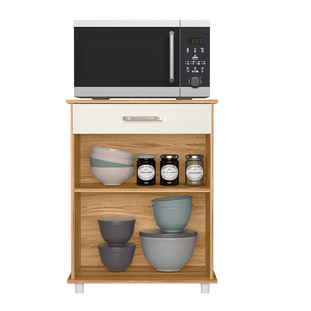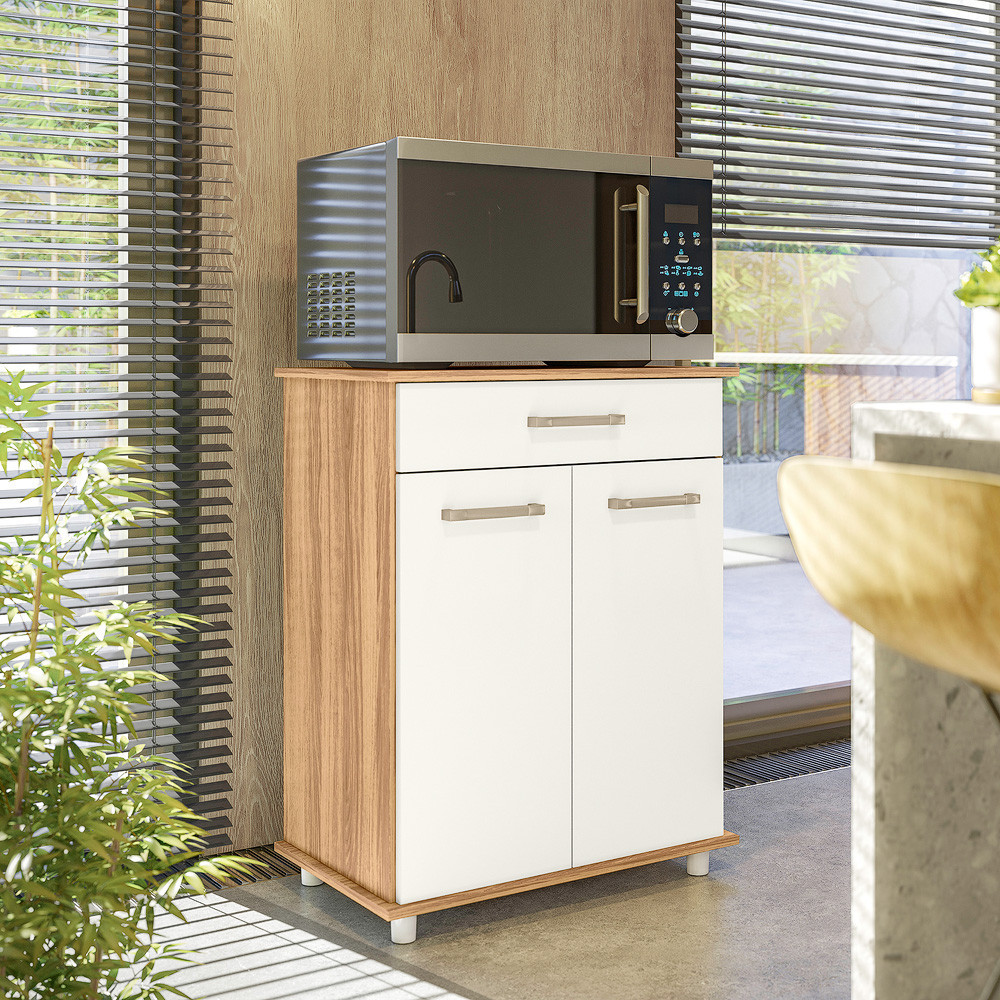 Balcão Multiuso Isis Duplo 2 Portas 1 Gaveta Freijo com Off White Nicioli