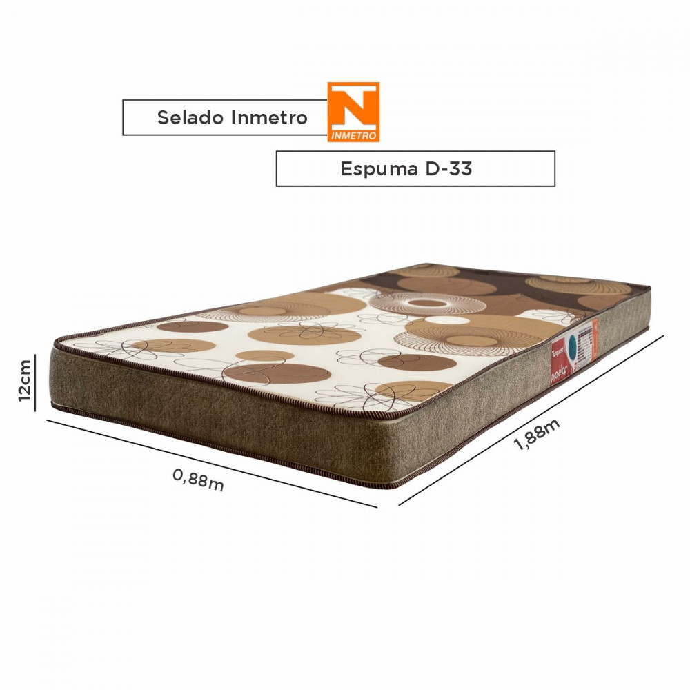 Colchão Solteiro Espuma D33 Turquesa 88cm x 188cm x 12cm Marrom Estampado Prorelax