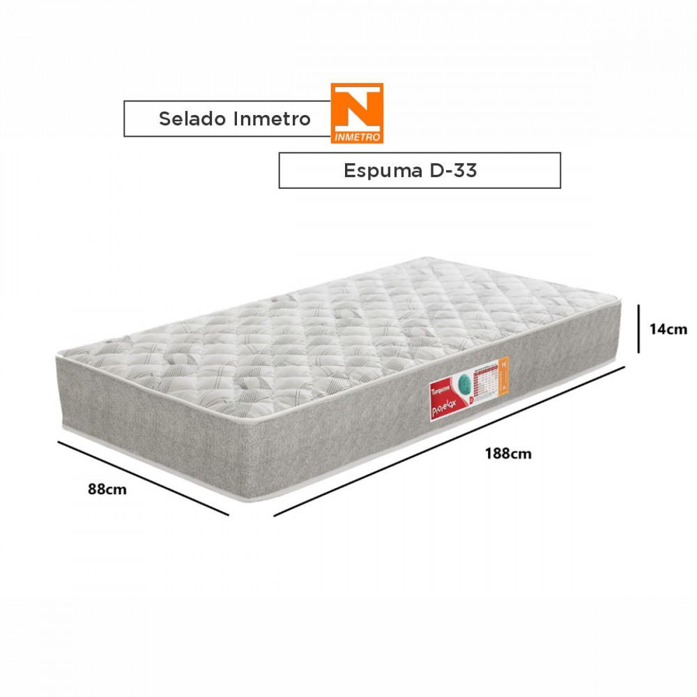 Colchão Solteiro Turquesa D33 088X188X14 Cinza e Branco Prorelax