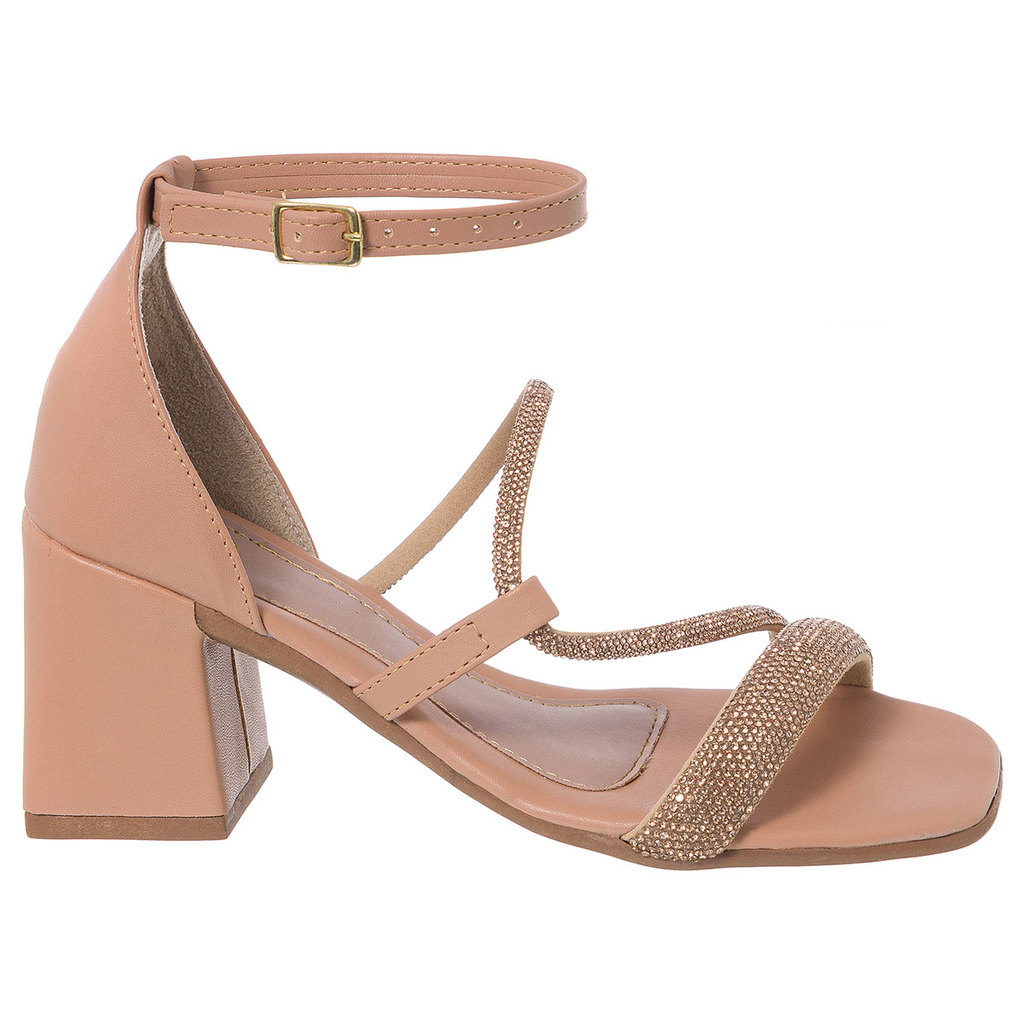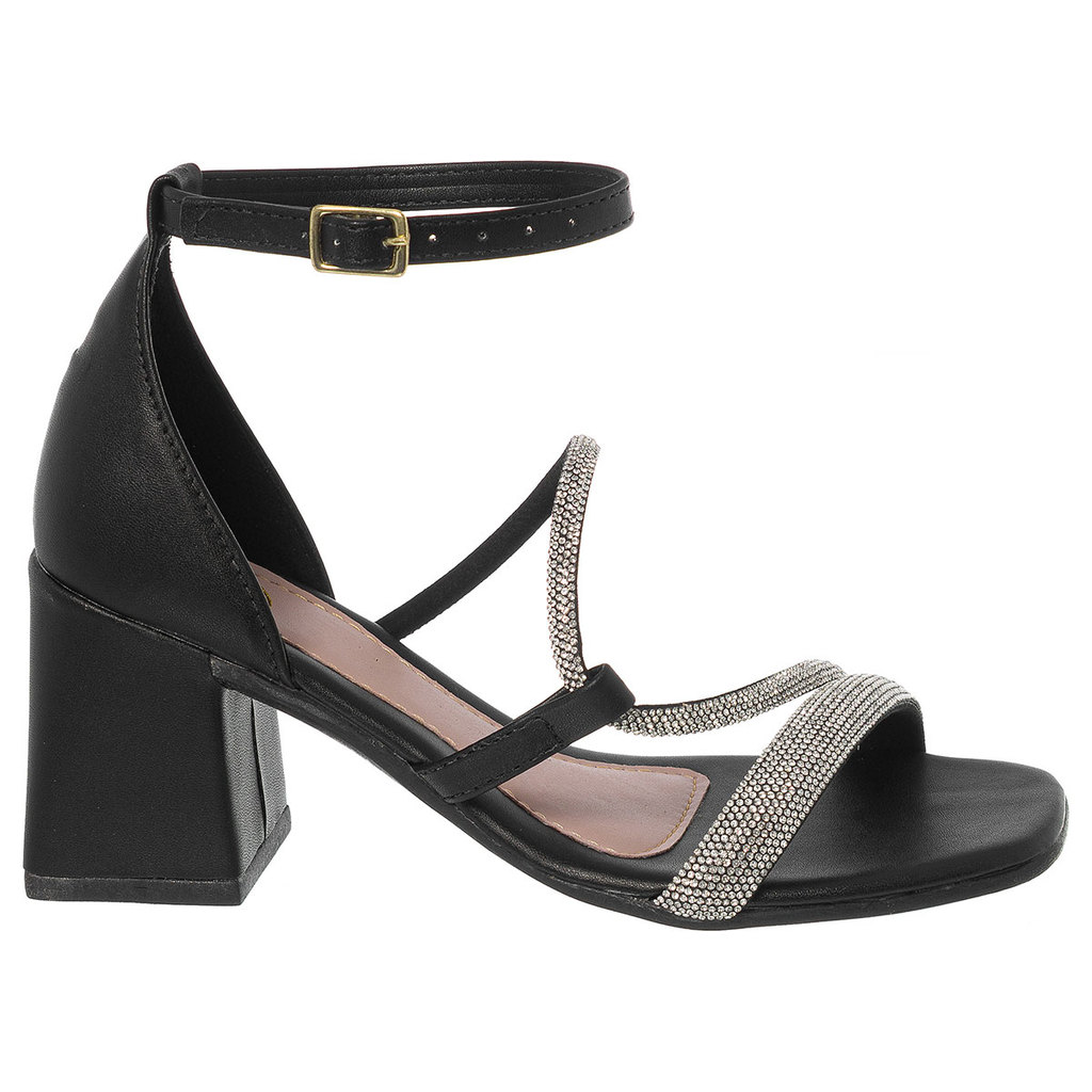 Sandália Feminina Salto Bloco com Strass em S Elegância e Conforto