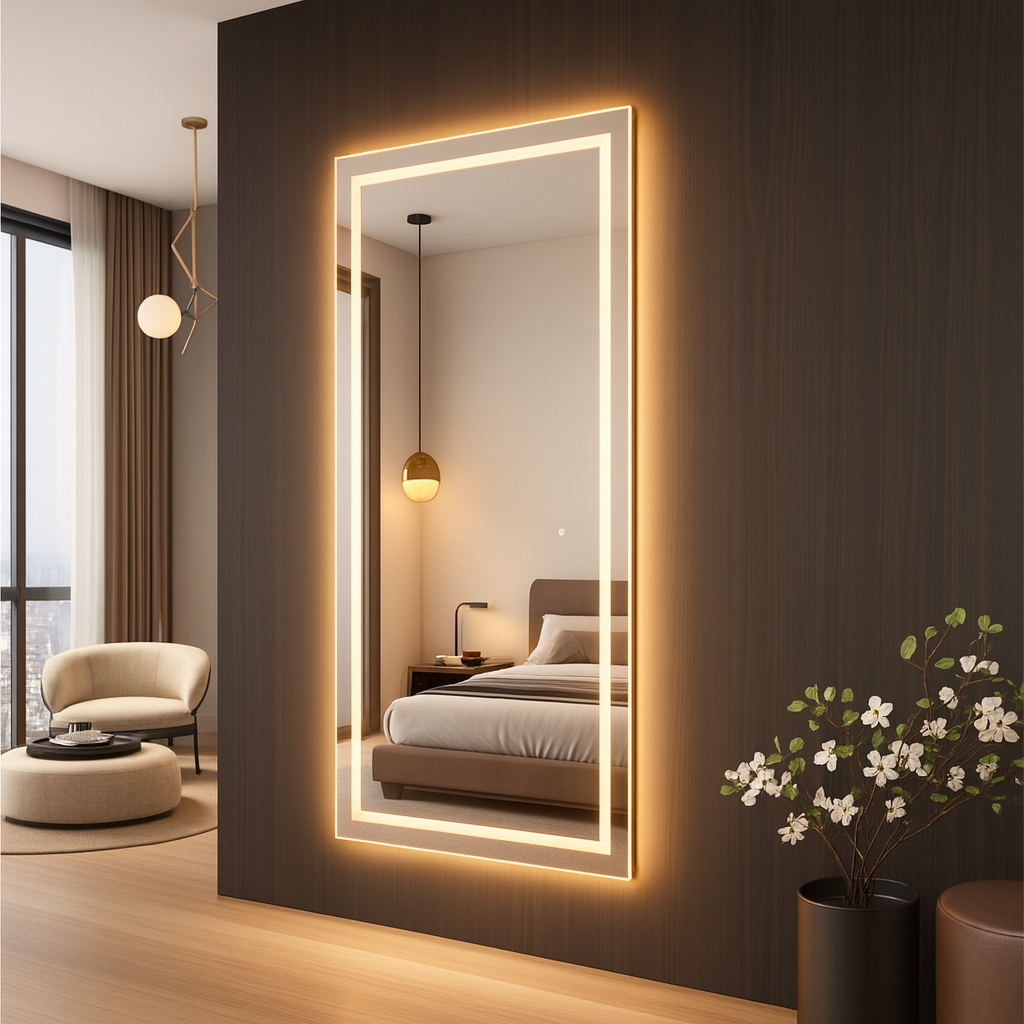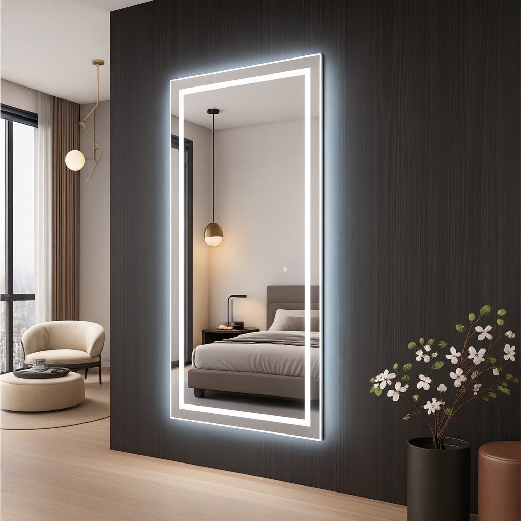Espelho Retangular Grande com LED Touch – Jateado Vários tamanhos