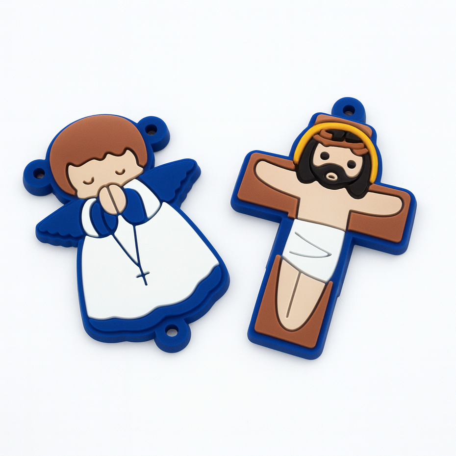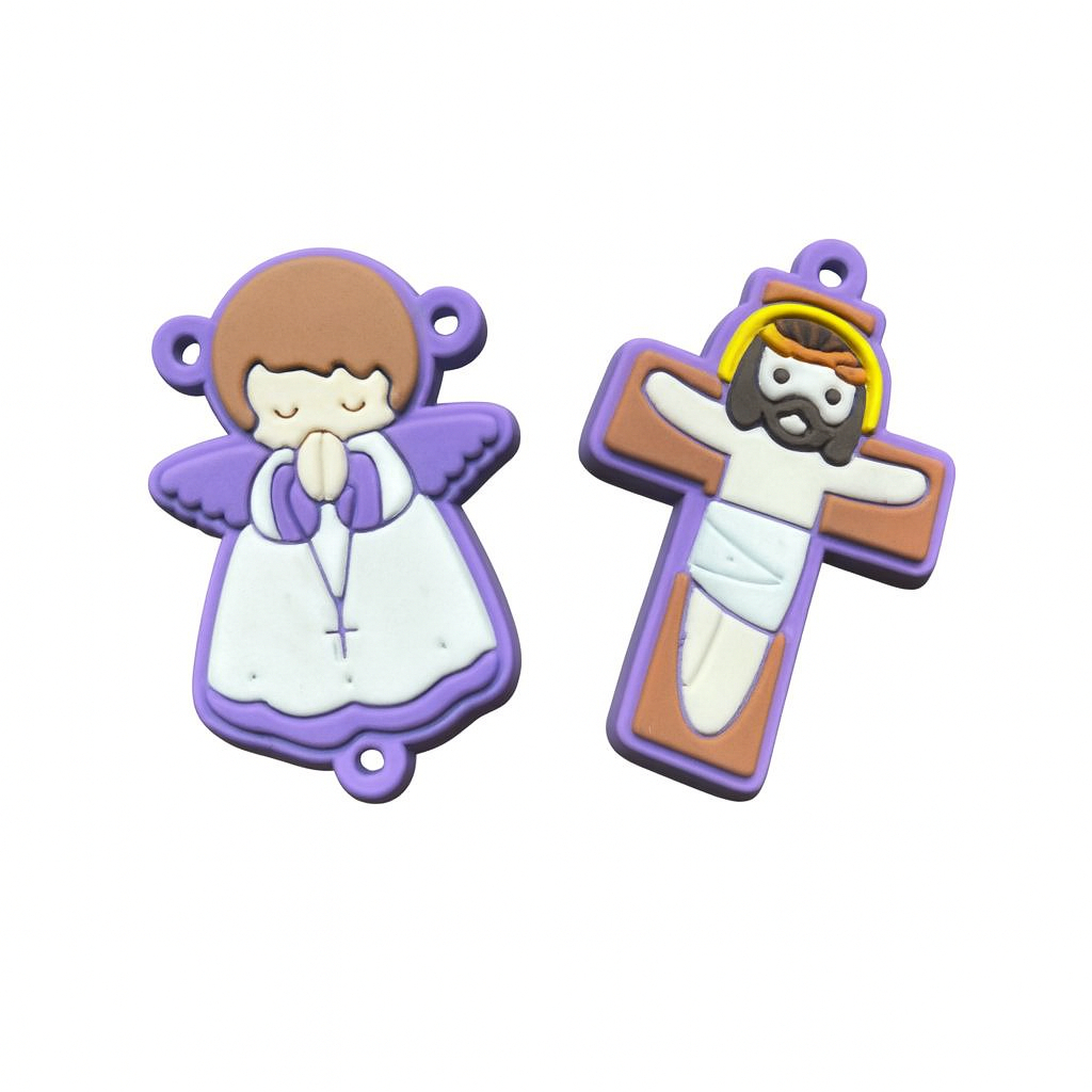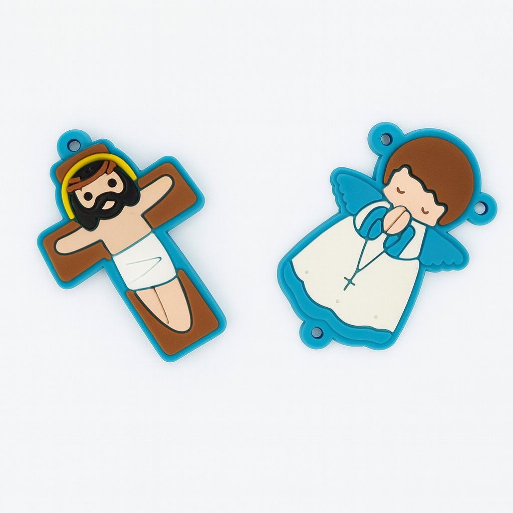 Apliques Emborrachados Anjo e Cristo Para Terço Católico Customização Chaveiro Infantil
