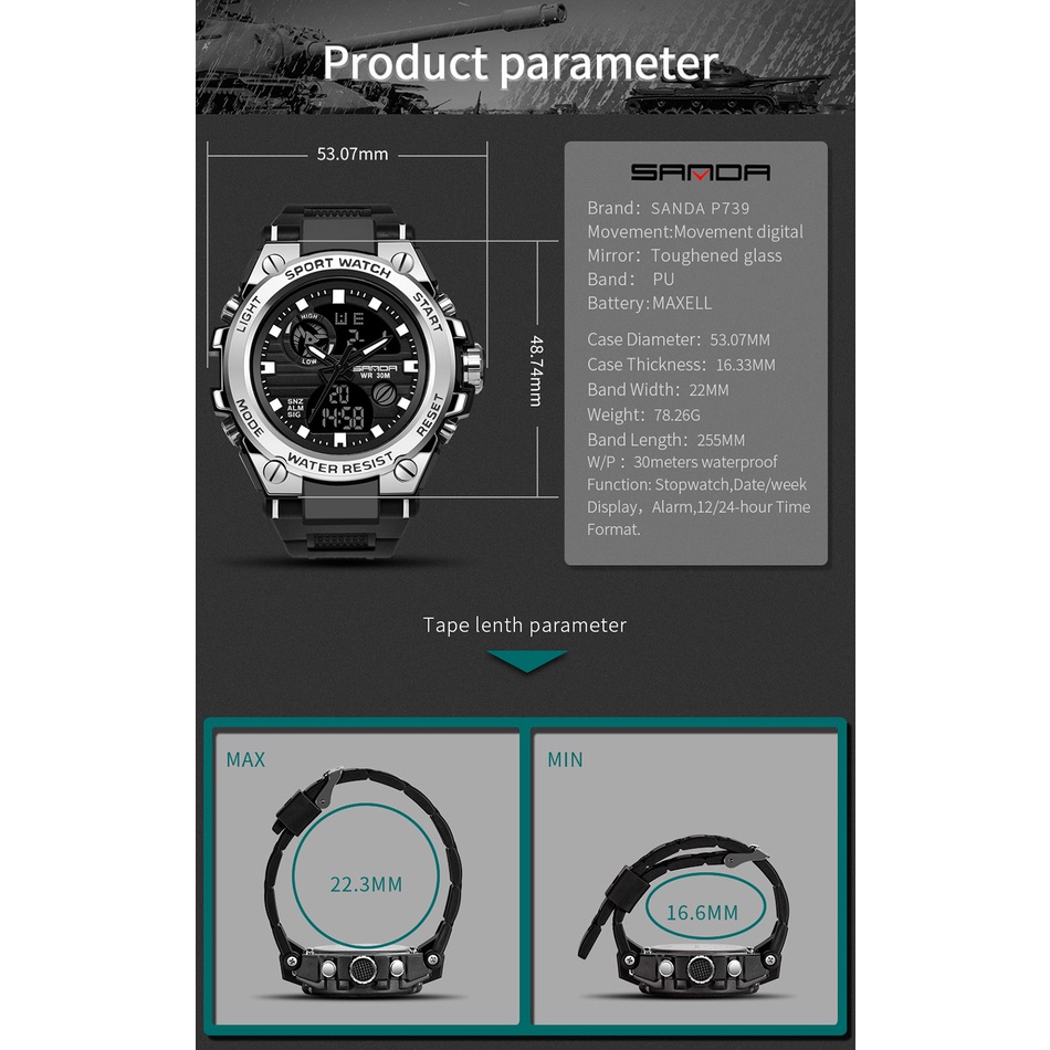 SANDA Relógios Esportivos De Marca De Luxo À Prova D'água Com Homens Cronógrafos De Dupla Exposição
