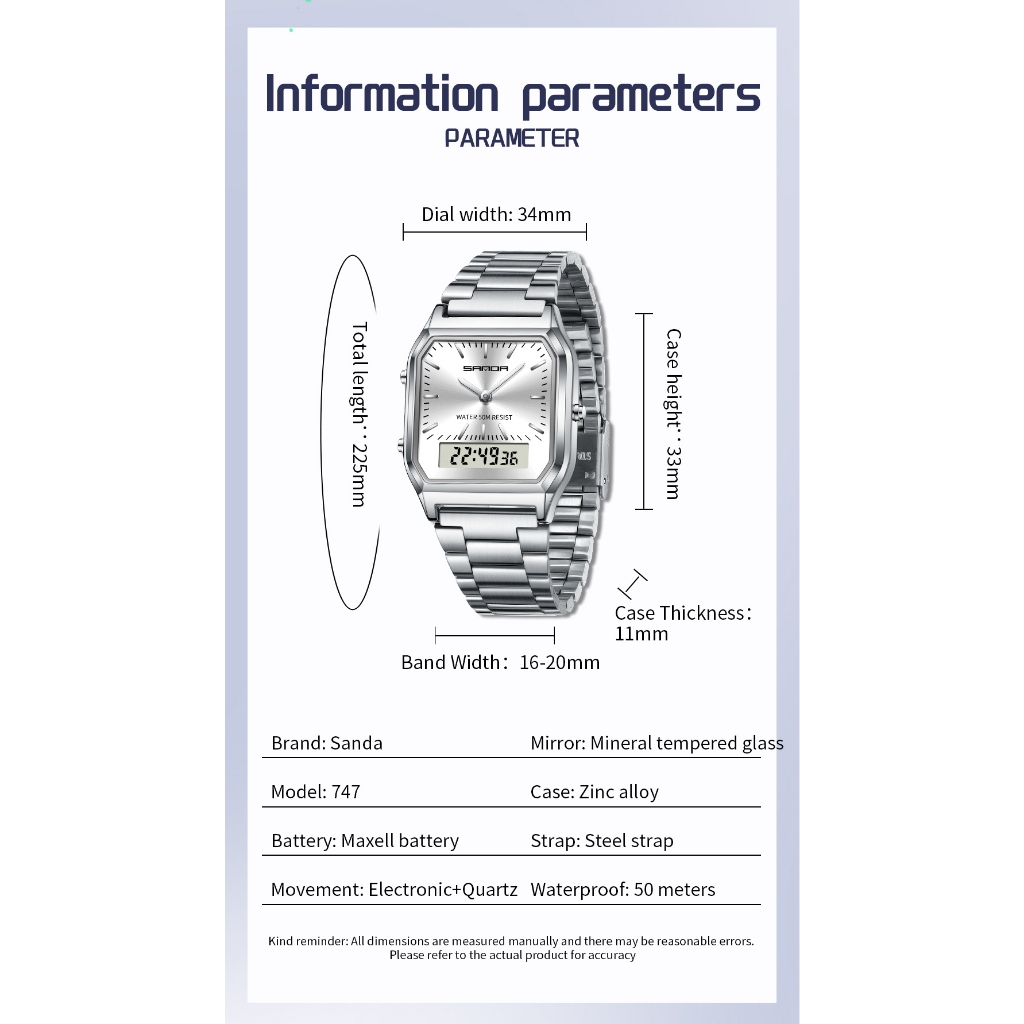 SANDA 747 Relógio Digital De Quartzo Masculino/Feminino À Prova D'água De Moda Casual Resistente Ao Desgaste Modelo De C