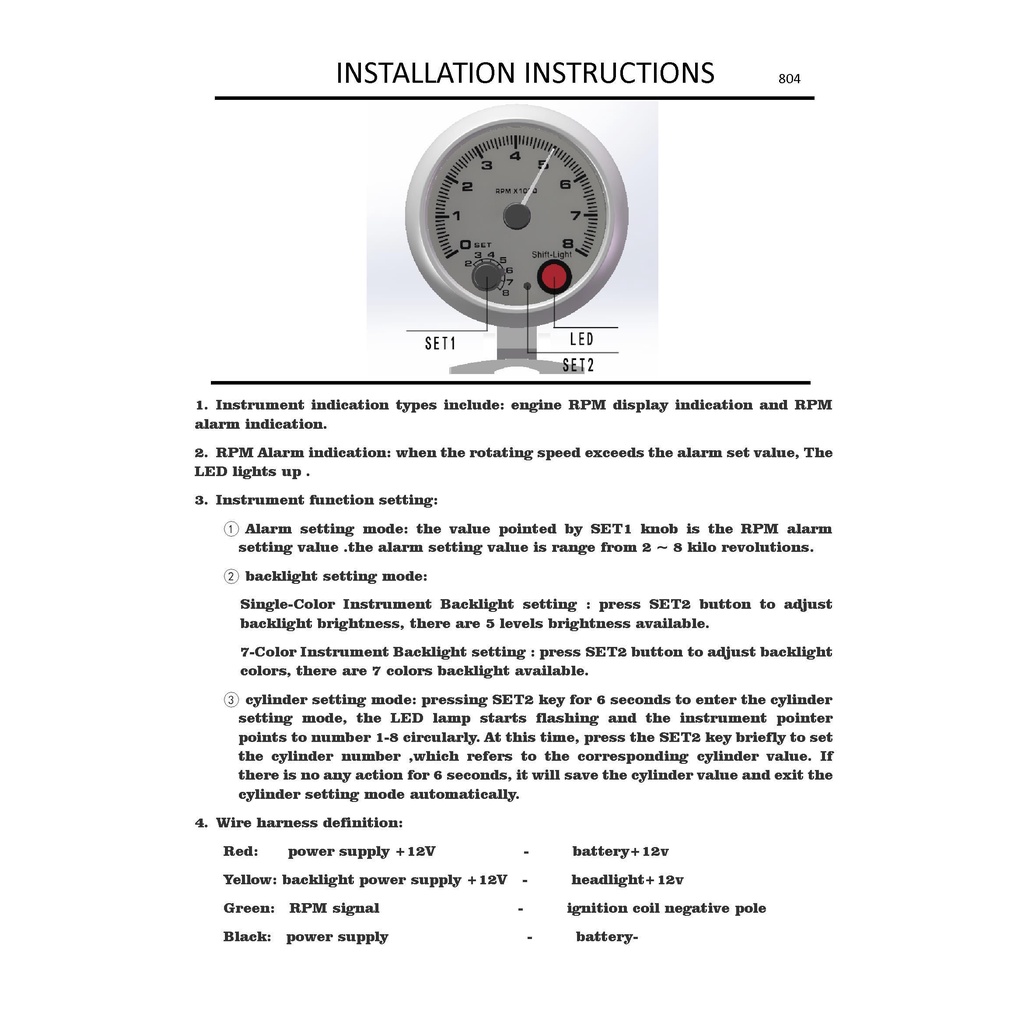 Novo 3.75 " 95mm Tachômetro RPM Medidor De Led Branco Com Deslocamento Interno Luz Preto Caso Apto Para 1-8 Cilindros