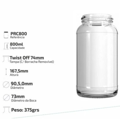 Kit Pote de Vidro Conserva 800ml + Tampa Metálica e Lacre para conservas, doces, azeitonas, pimentas