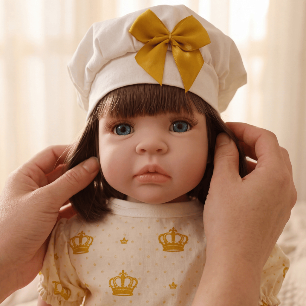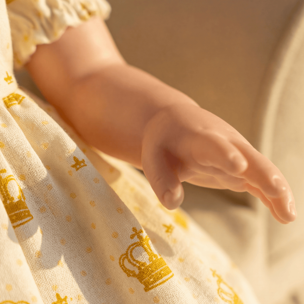 Boneca Bebê Reborn Silicone Realista Menina Vestido Dourado Original Pode dar Banho