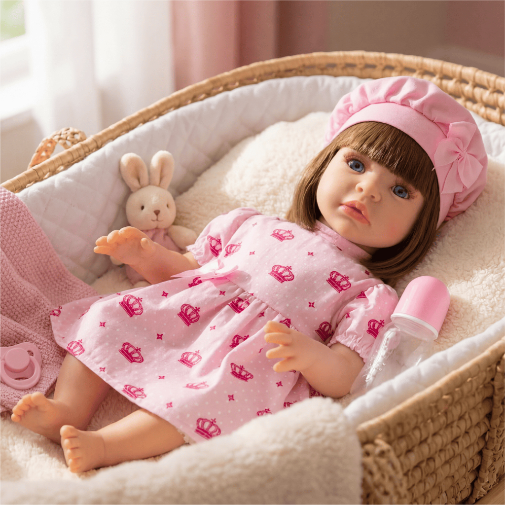 Bebê Reborn Luxo Realista de Silicone Pode Dar Banho Envio Imediato Vestido Rosa