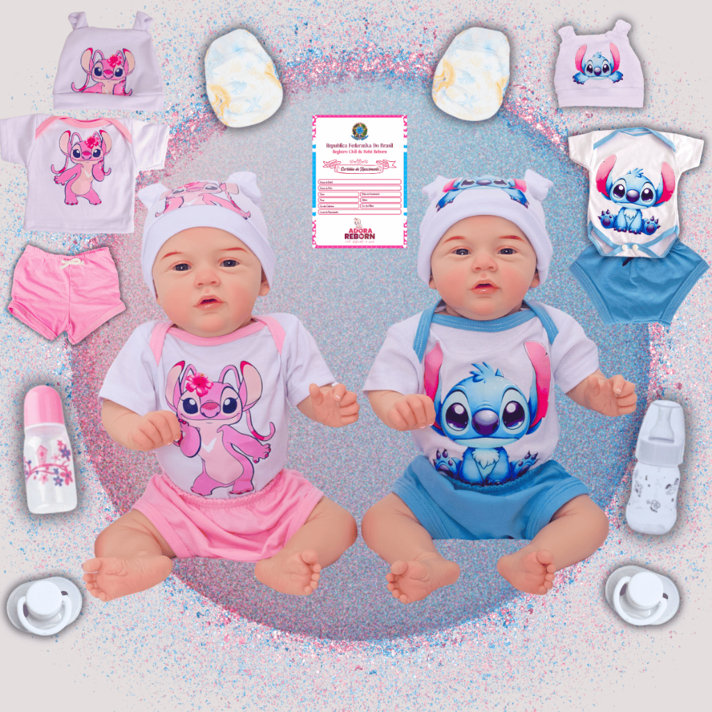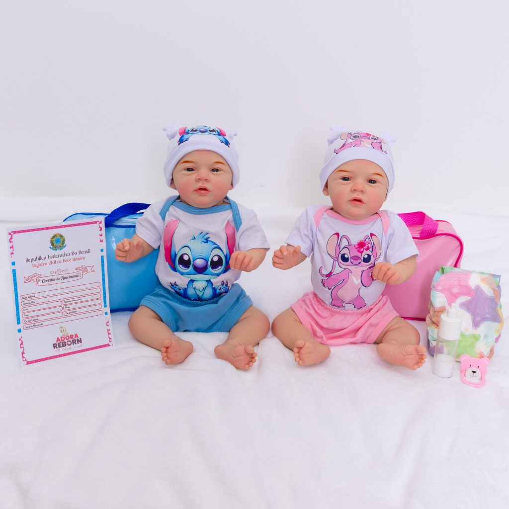 Gêmeos Bebê Reborn Boneca Realista Mary Menina e Menino Silicone Bolsa Maternidade