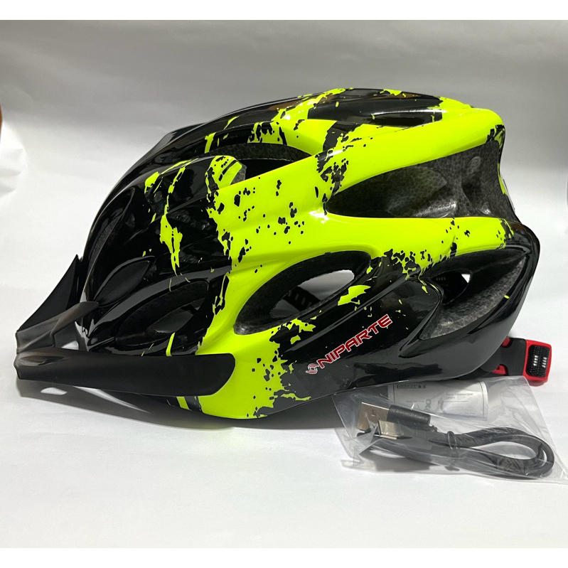 Capacete Bike NIPARTE C/Sinalizador Led Recarregável de USB In-Mould Resistente e leve para bicicletas