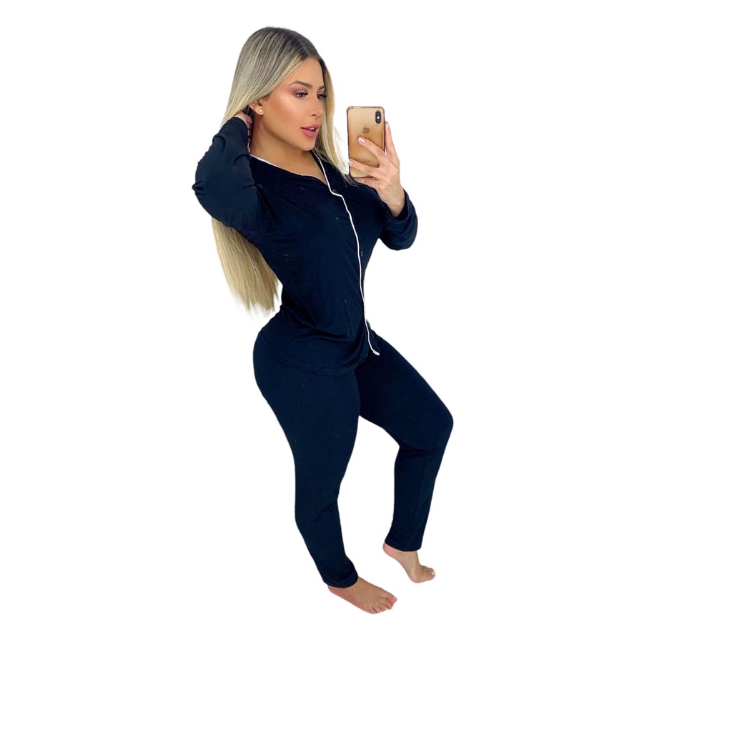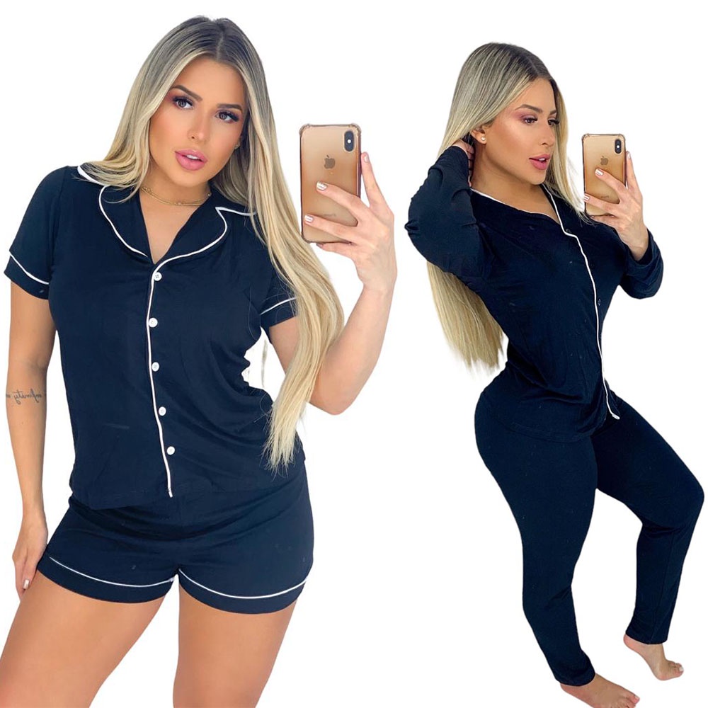 Kit 2 Pijamas Femenino Americano Verão Curto Inverno Longo