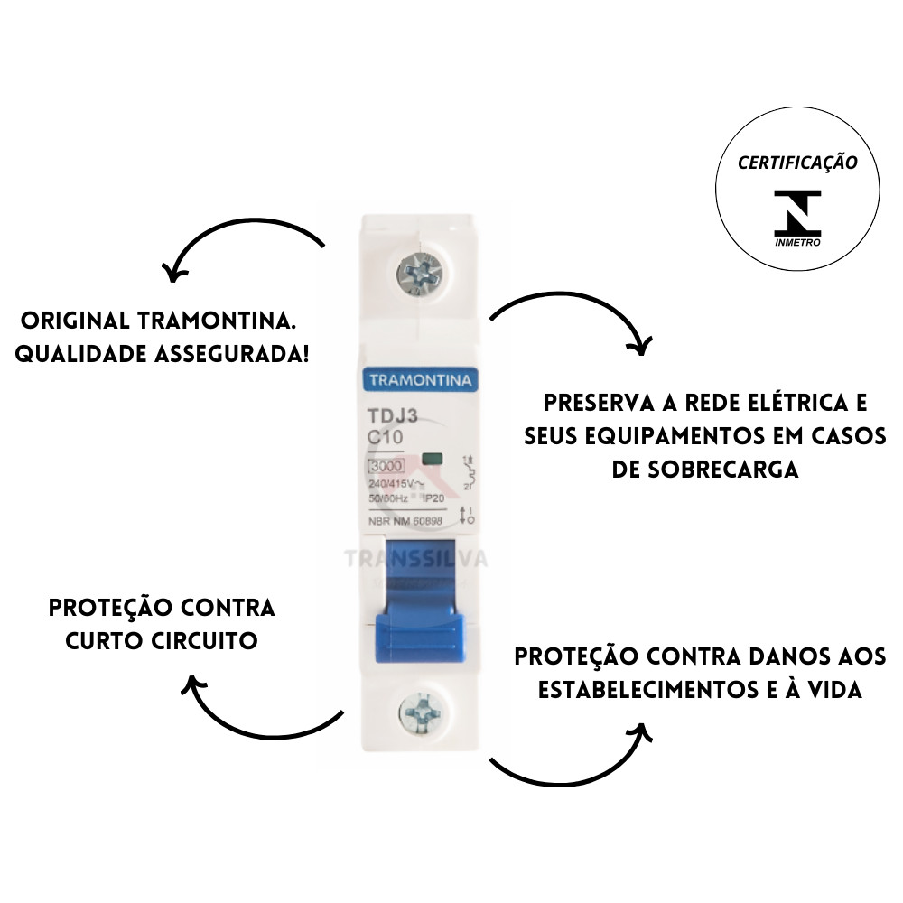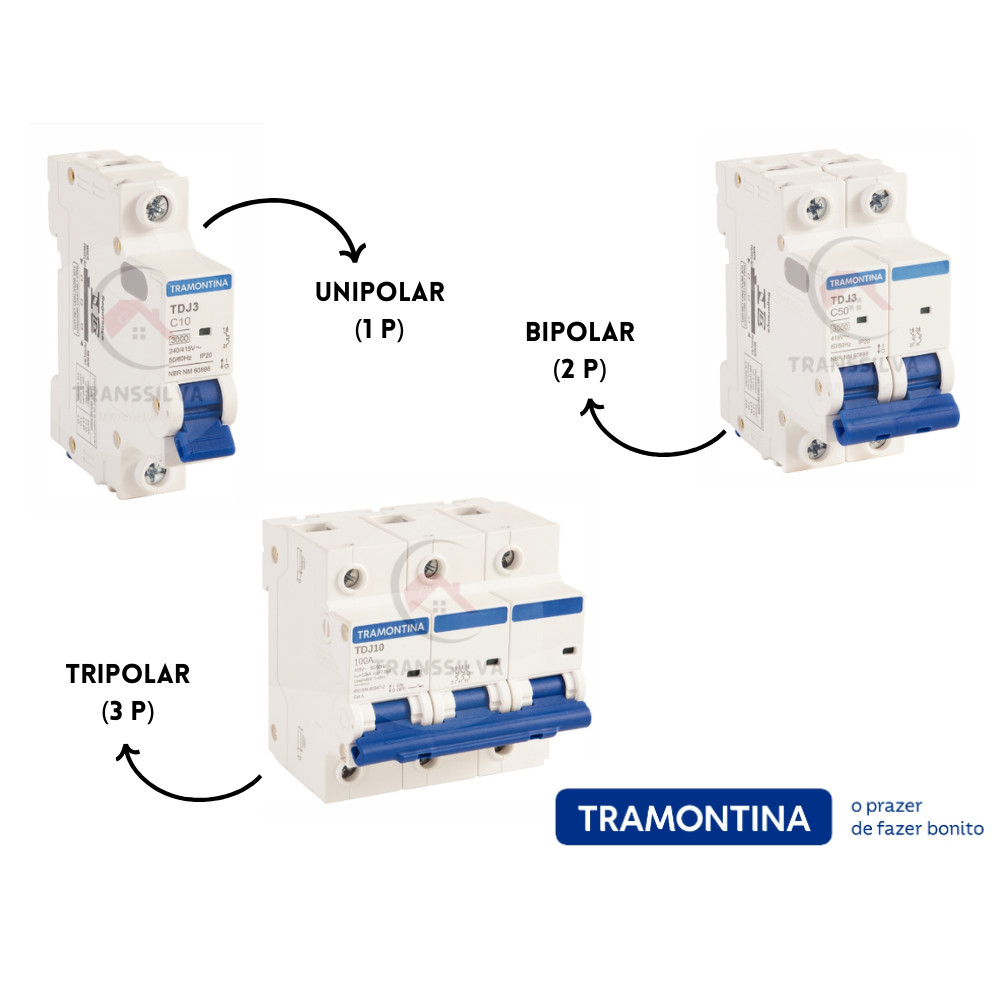 Disjuntor DIN Unipolar, Bipolar e Tripolar Curva C IP20 Várias Amperagens - Tramontina