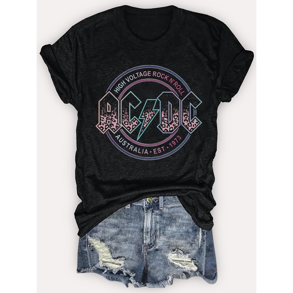 Camiseta Feminina Vintage da Banda de Rock com Gráfico Algodão Premium