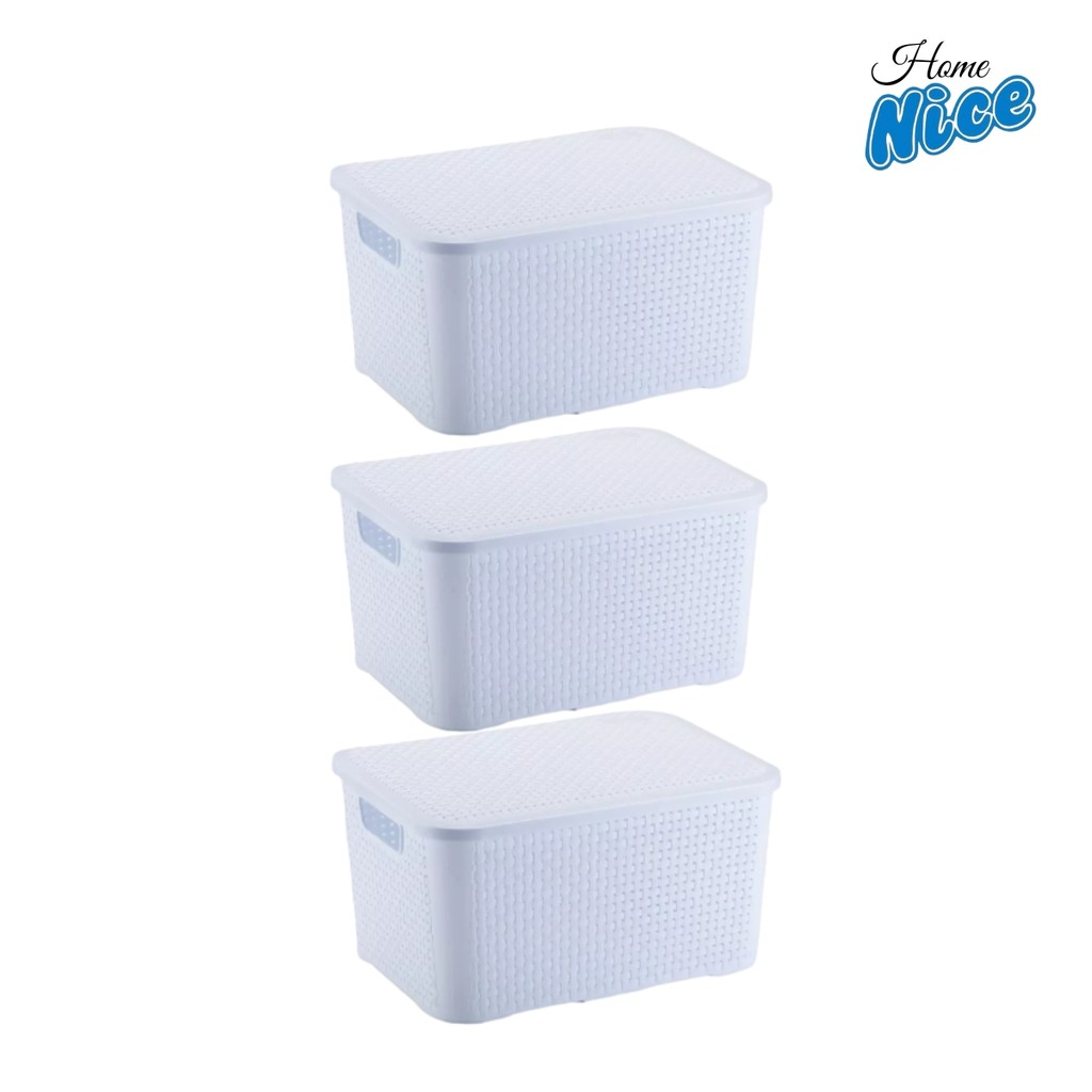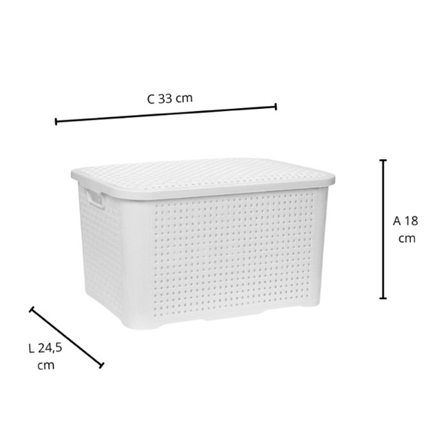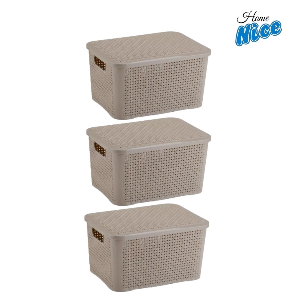 Kit com 3 Caixas Organizadoras Média Rattan Com Tampa 14 Litros