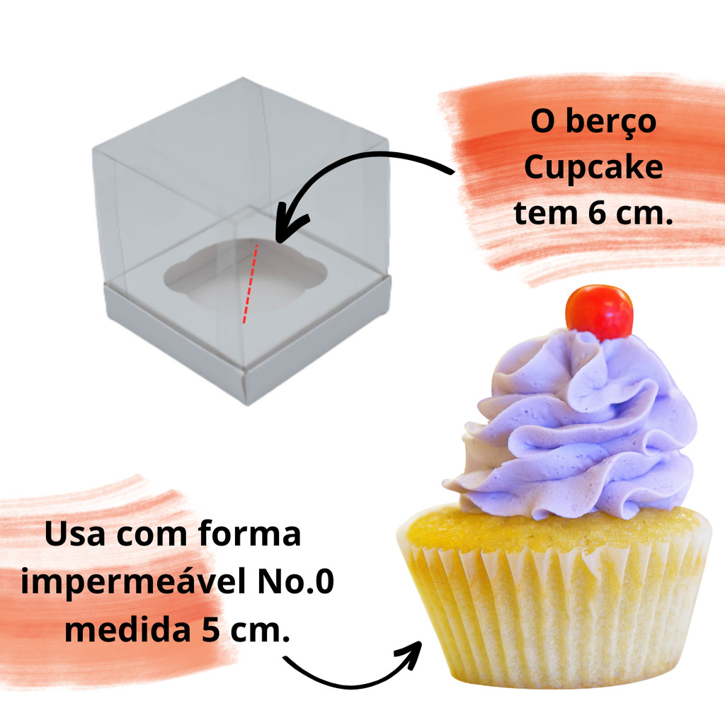 10 Caixas para 1 Cupcake 9x9x9 Tampa Acetato - Branco