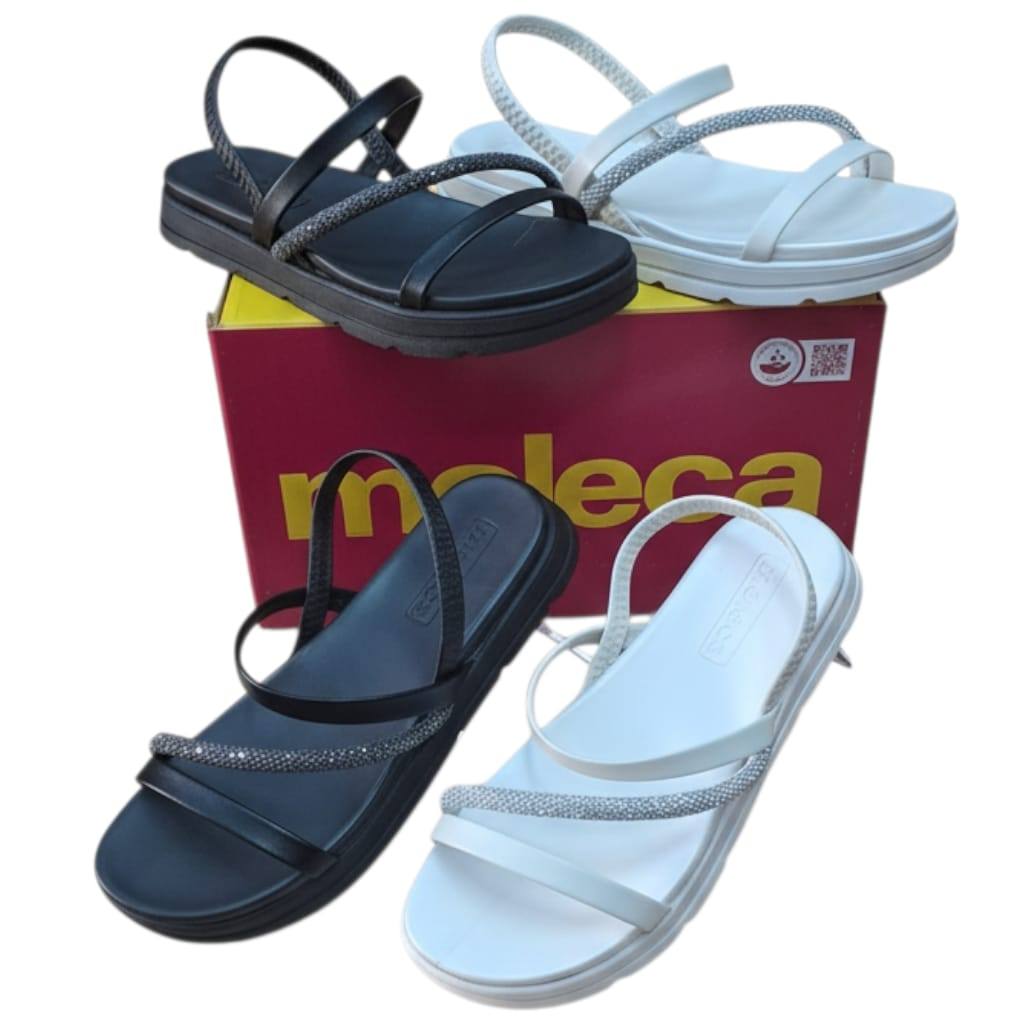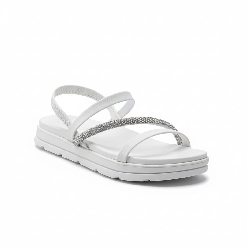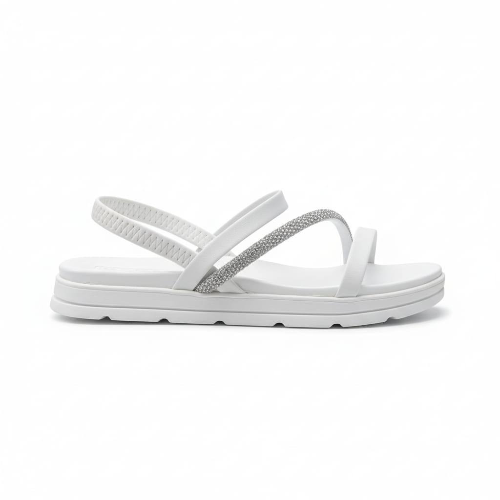 Sandália Papete Feminina Branca Plataforma Conforto Tiras com Strass