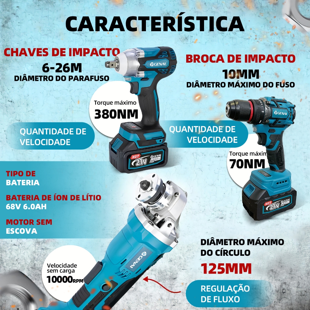 Brushless 21V Ferramentas Multifunções 3 Em 1 Bateria Parafusadeira Chave Pneumatica Esmerilhadeira