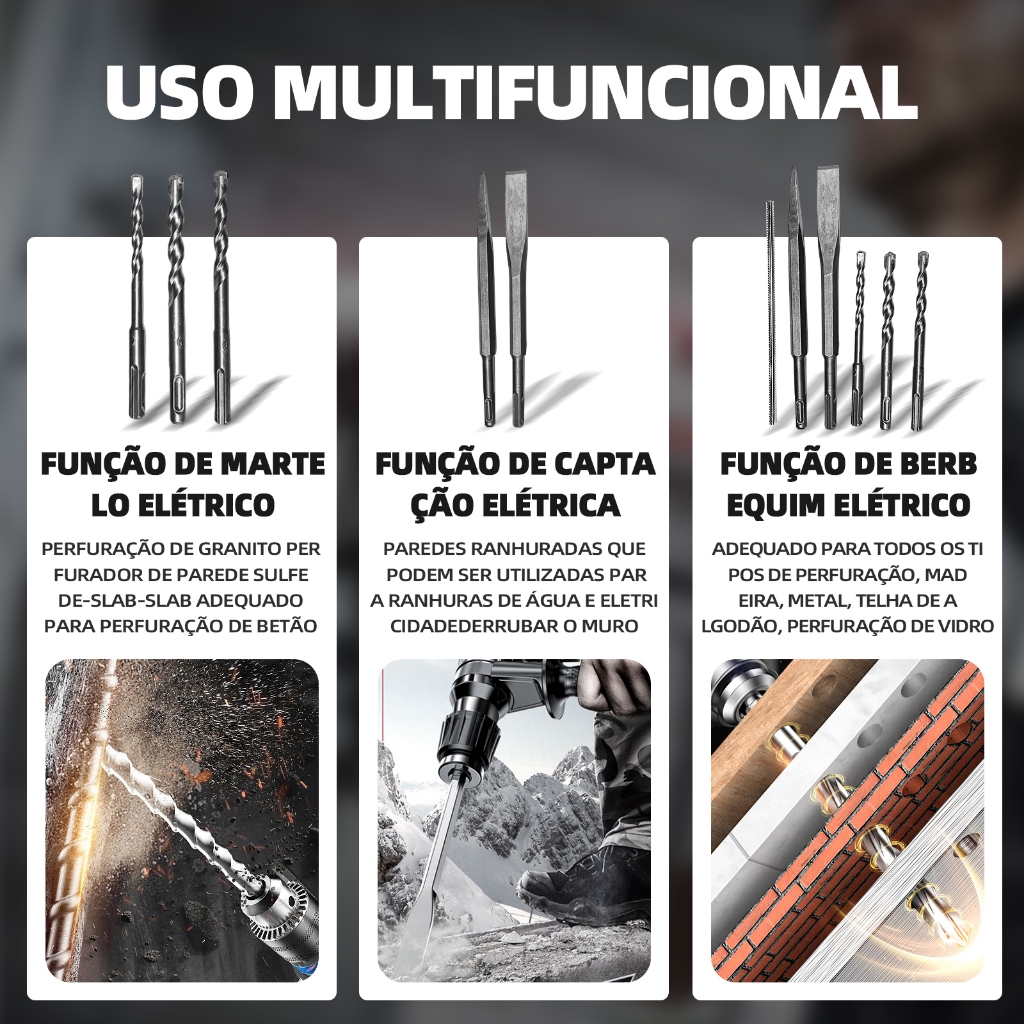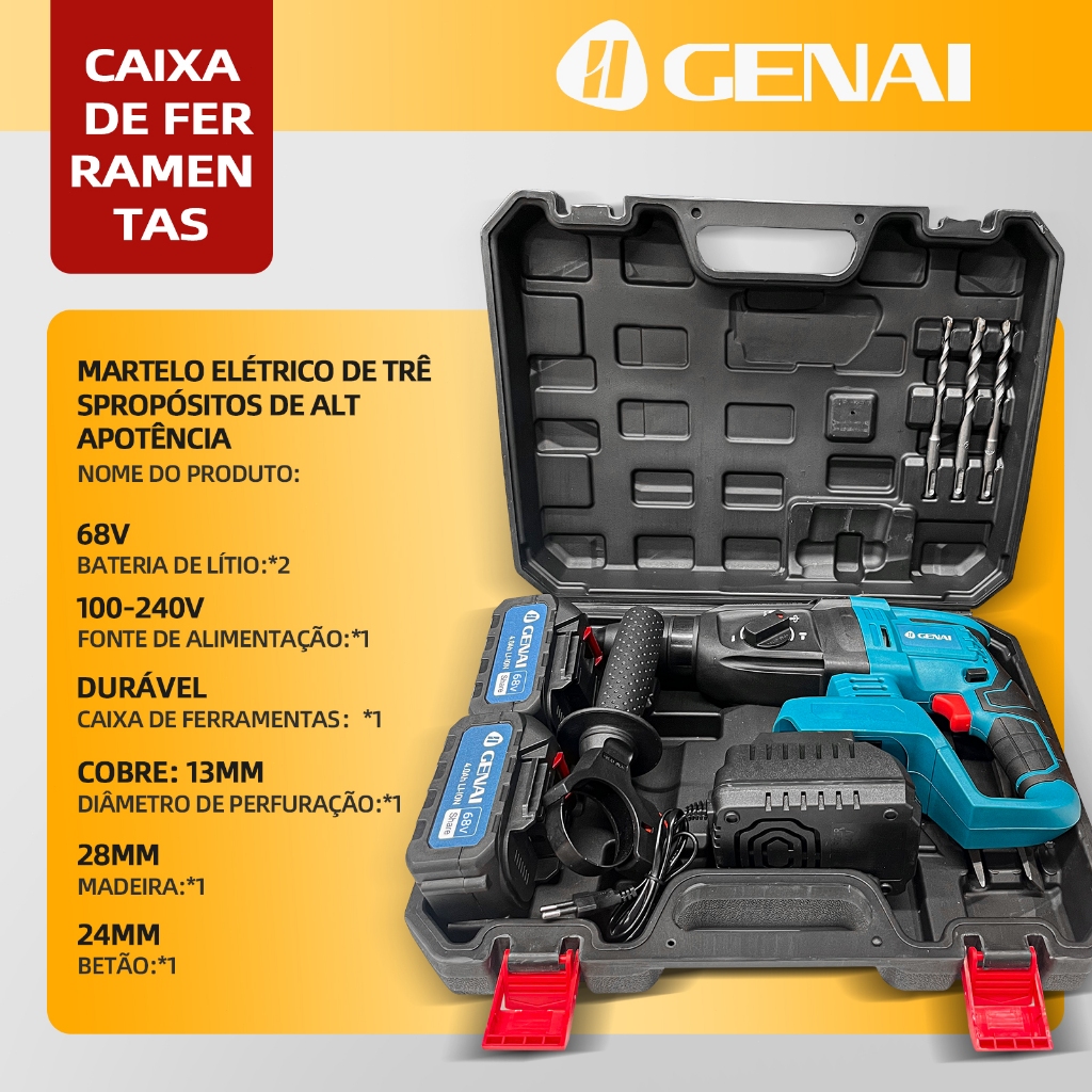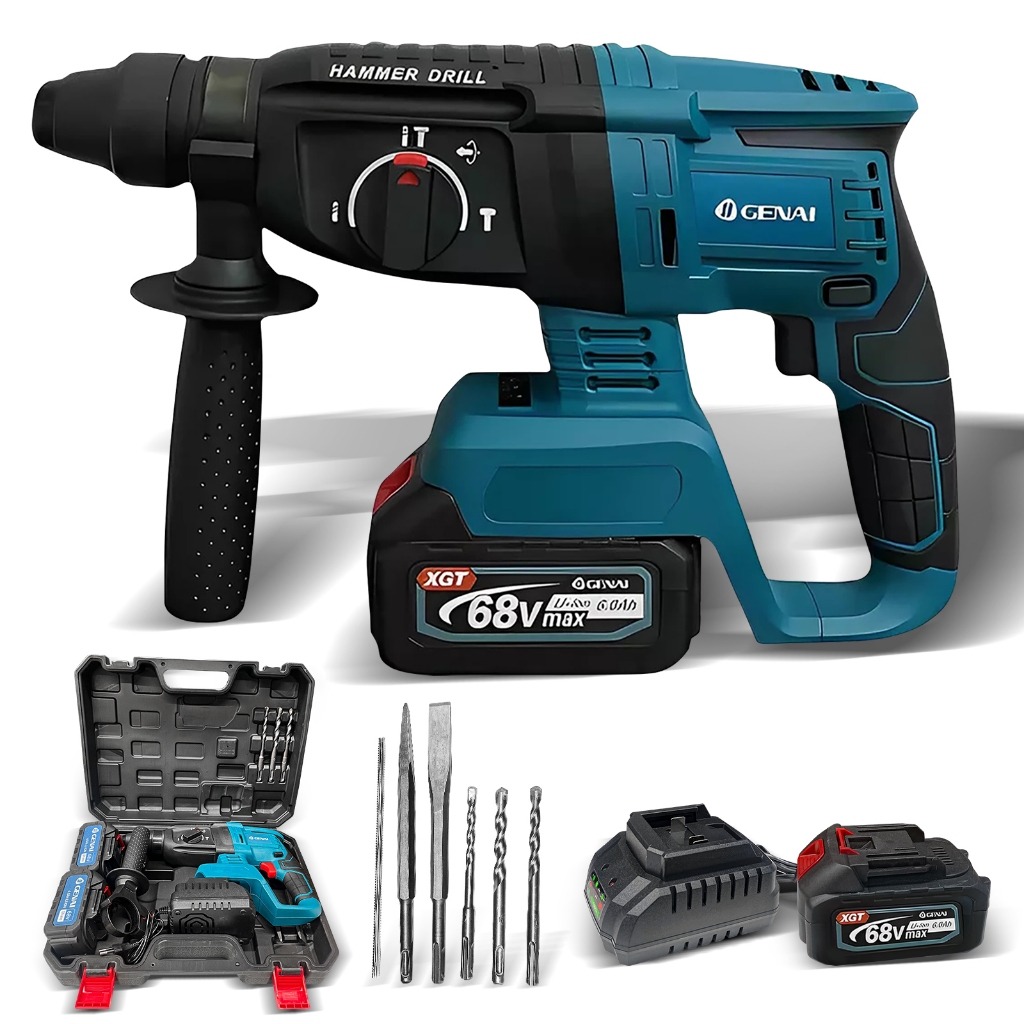 600W Furadeira de parede 21/68V com martelo 26MM 2 Baterias