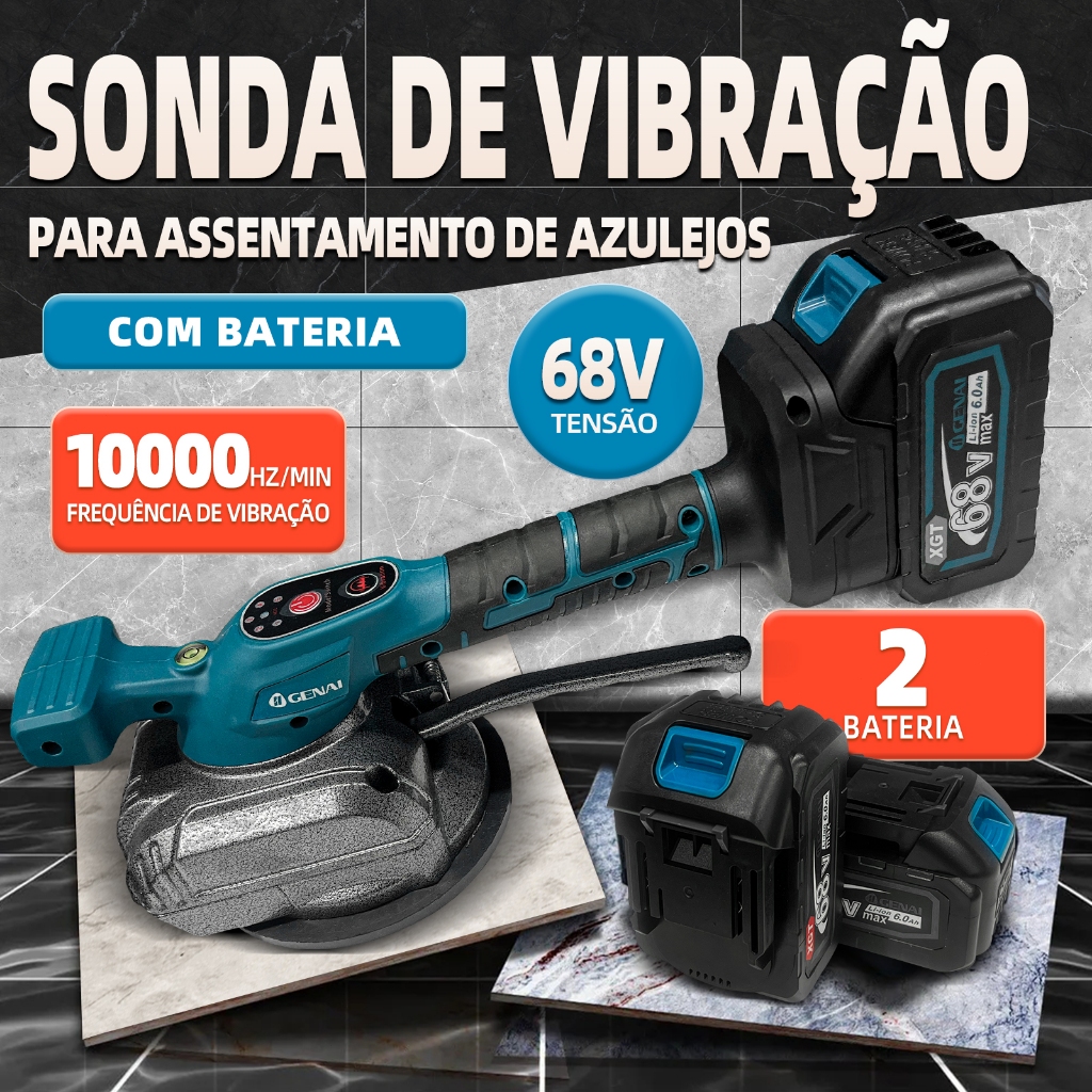 Maquina De Assentar Piso Elétrica Recarregável Com 2 Baterias 68v Linha Premium