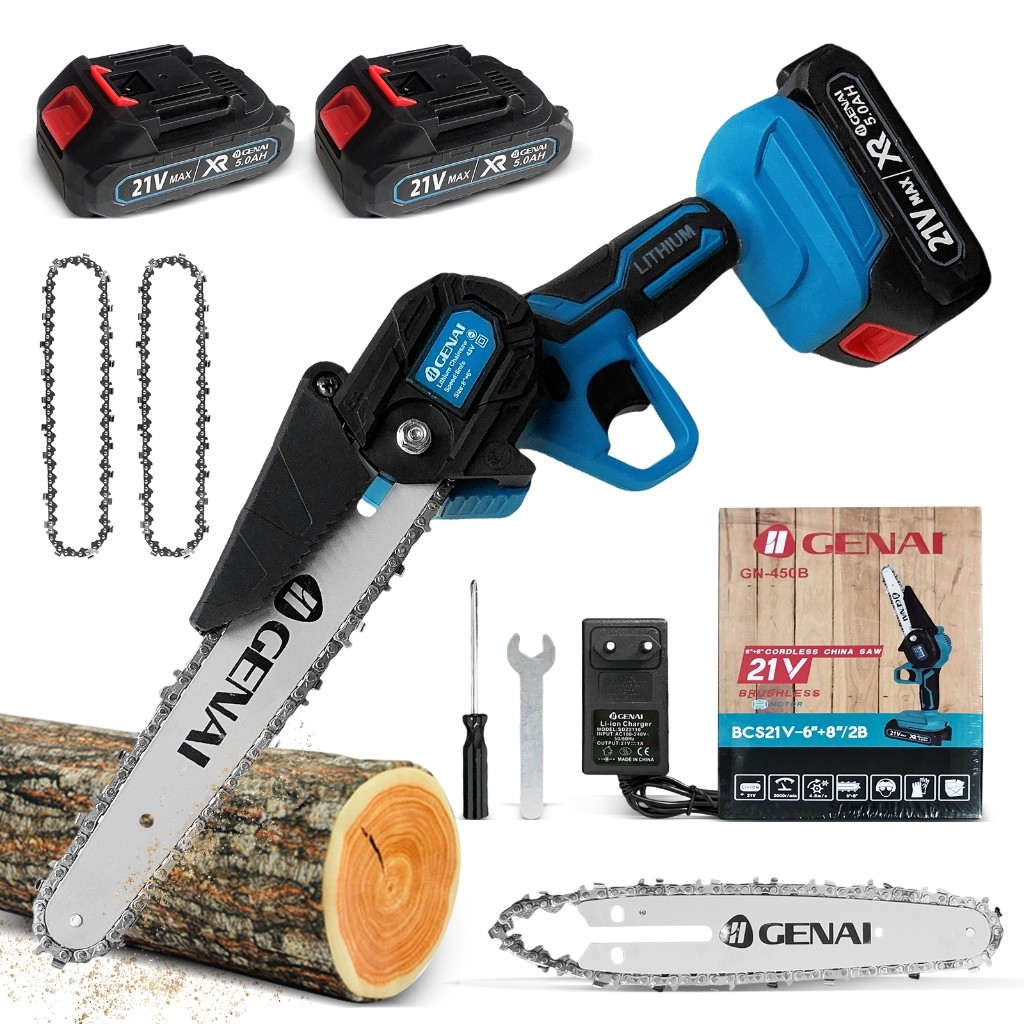 21V 6+8 Polegadas Motosserra Portátil 2 Bateria Recarregável Mini Serra Elétrica Bivolt 110/220v