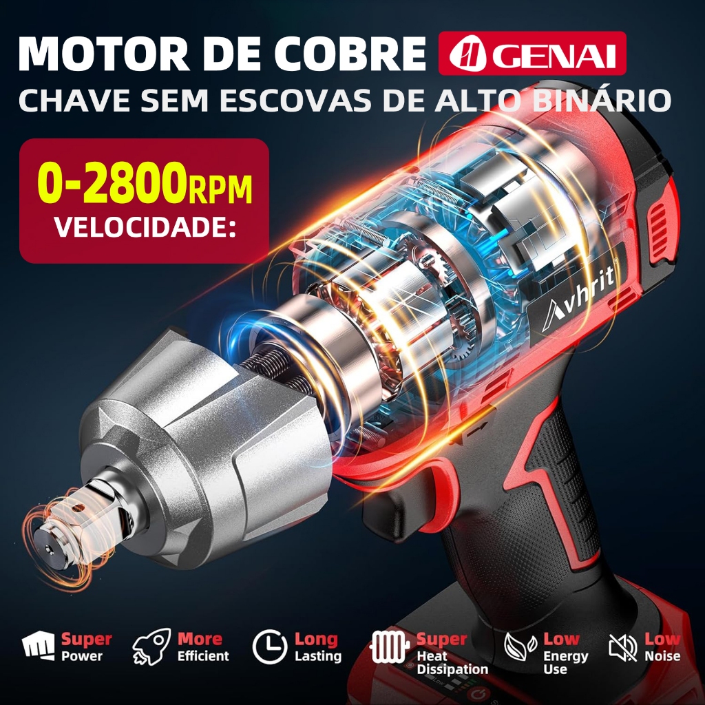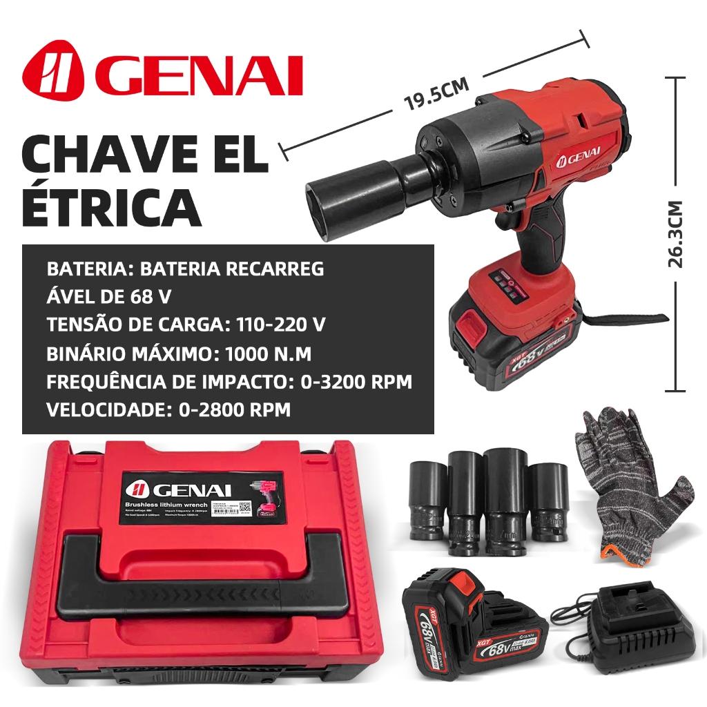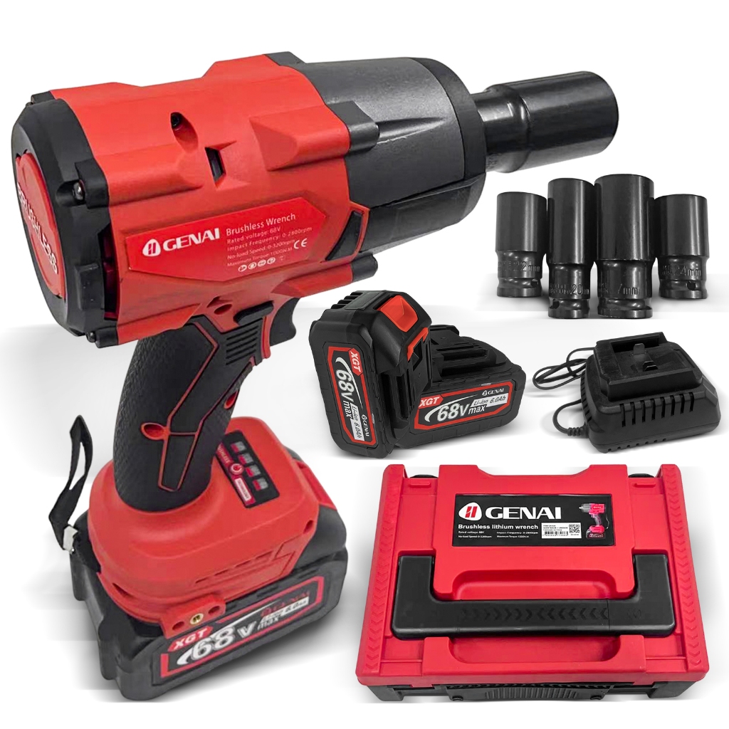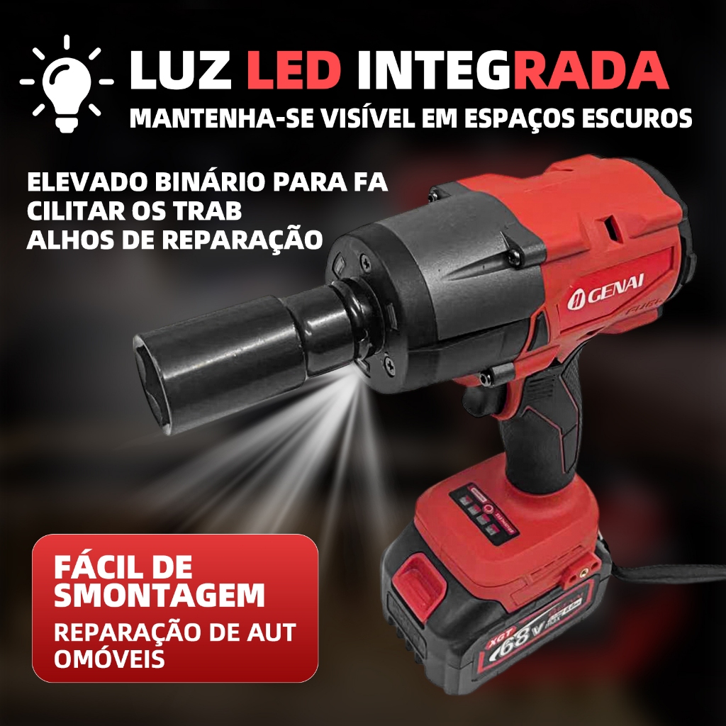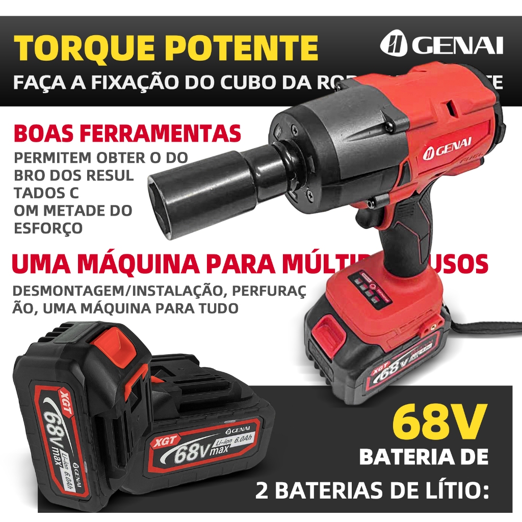 Parafusadeira Furadeira e Chave De Impacto 68v 02 Baterias Sem Fio 4 Soquetes Com Maleta Profissional 1000NM