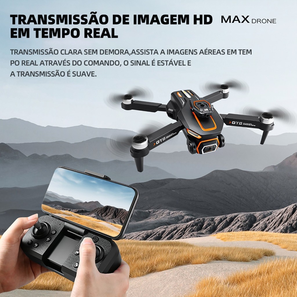 Drone profissional GT5 com motor sem escovas e câmara HD Wi-Fi FPV + 2 baterias B