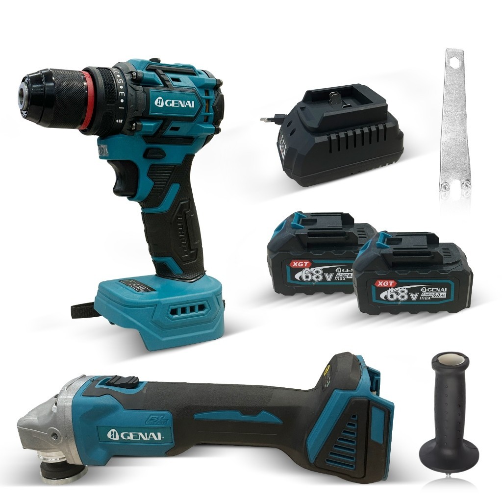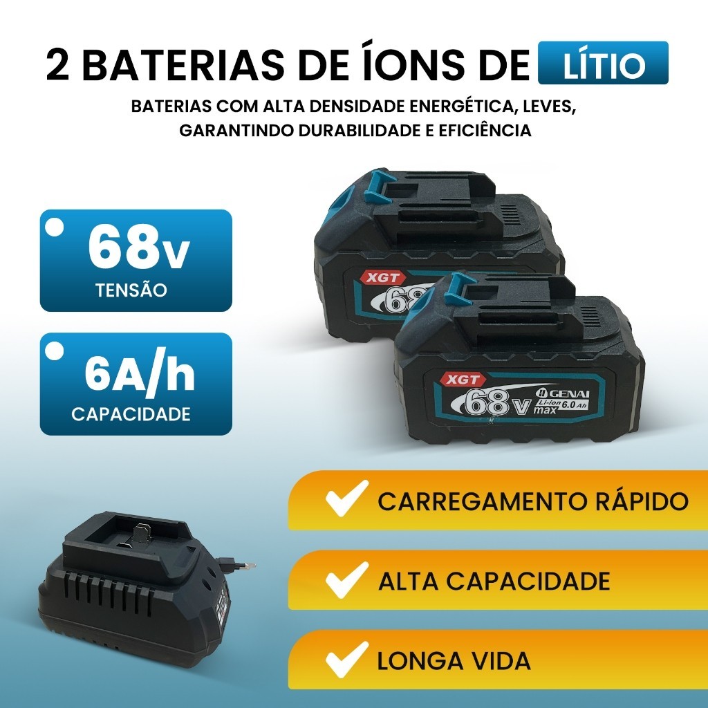 Kit 2 em1 Esmerilhadeira Sem Escovas Furadeira Elétrica 68V Com 2 Baterias