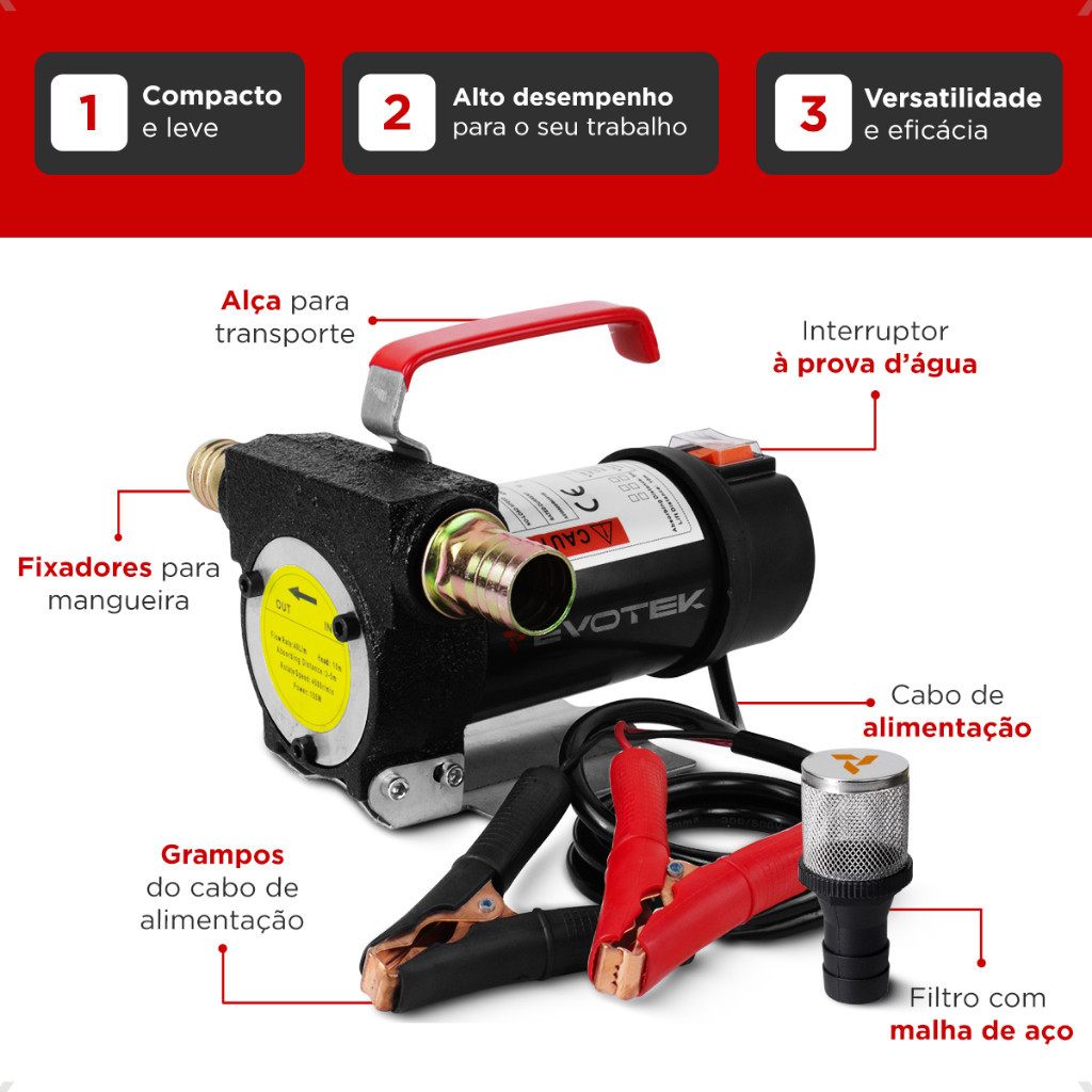 Bomba Diesel Elétrica 12V 40L/min Portátil Autoaspirante para Abastecimento