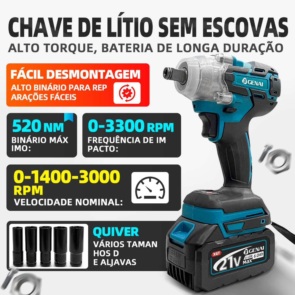 Kit de Ferramentas Sem Escova 5 em 1 com Bateria Lítio - Alta Potência Profissional