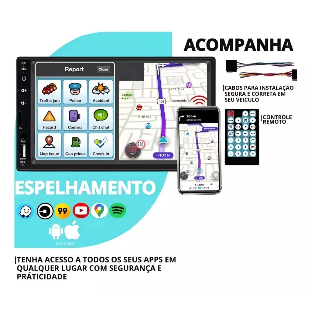 Central Multimídia Universal 1 din Rádio De Carro MP5 Video Player Bluetooth 7 Polegada Tela Sensível Ao Toque