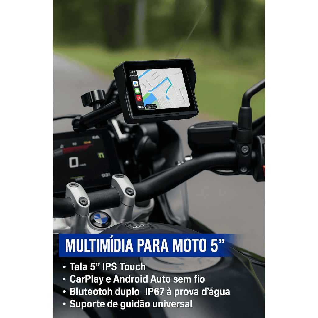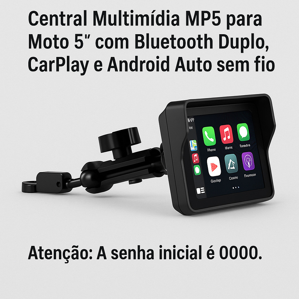 Central Multimídia MP5 para Moto 5” com Bluetooth CarPlay Android Tela Touch À Prova Dágua