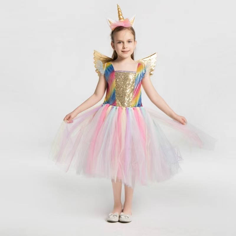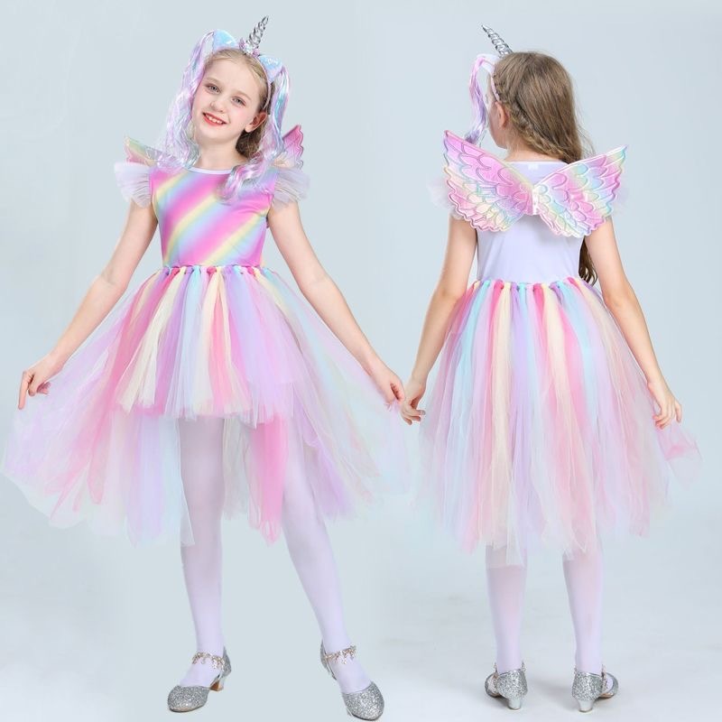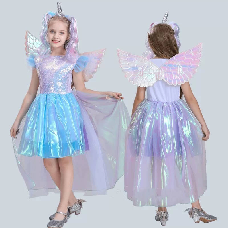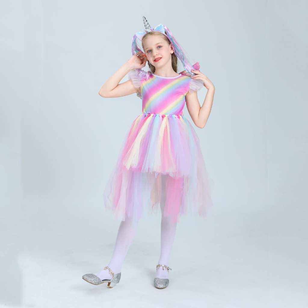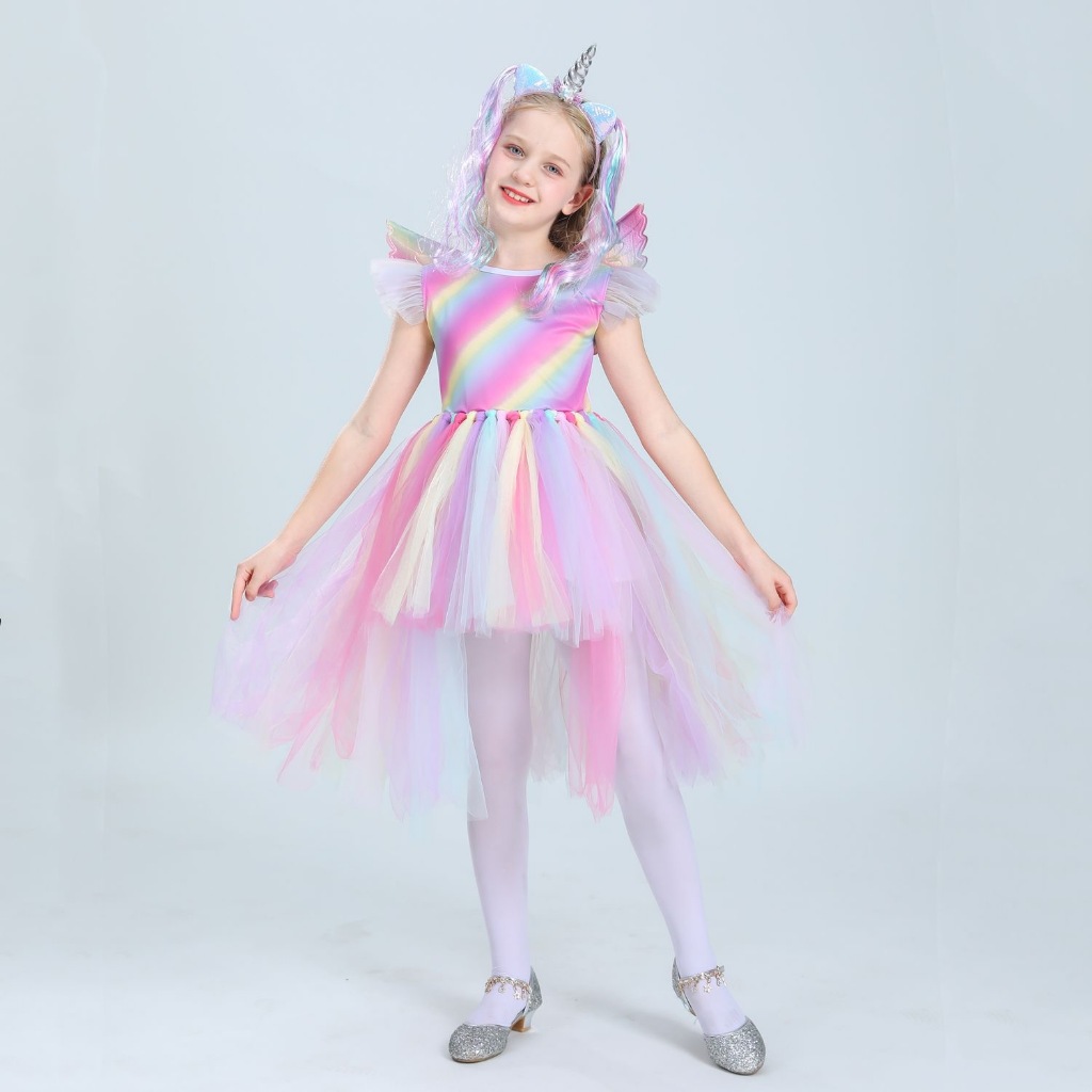 Fantasia Unicornio Colorida e Holografica completa c/ Tiara Cosplay, Hallowen e Festas