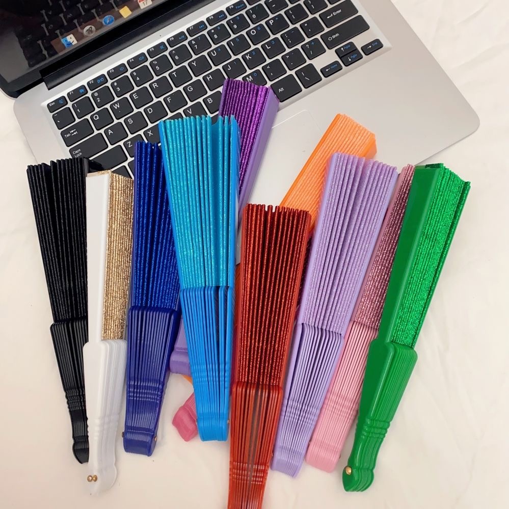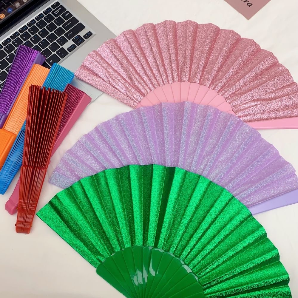 Leque Oriental Brilho Glitter Colorido Para Festa Dança Carnaval Decoração 23CM