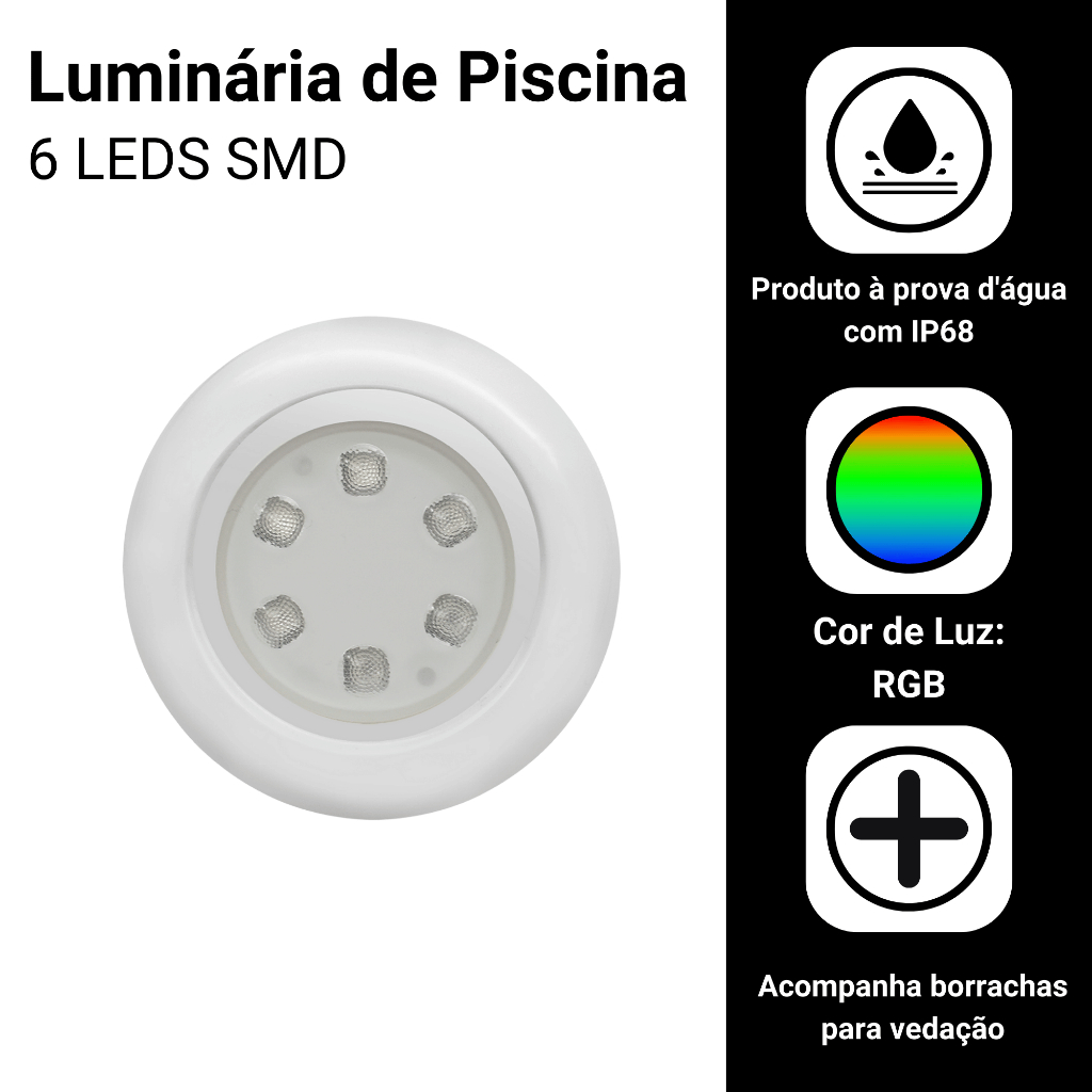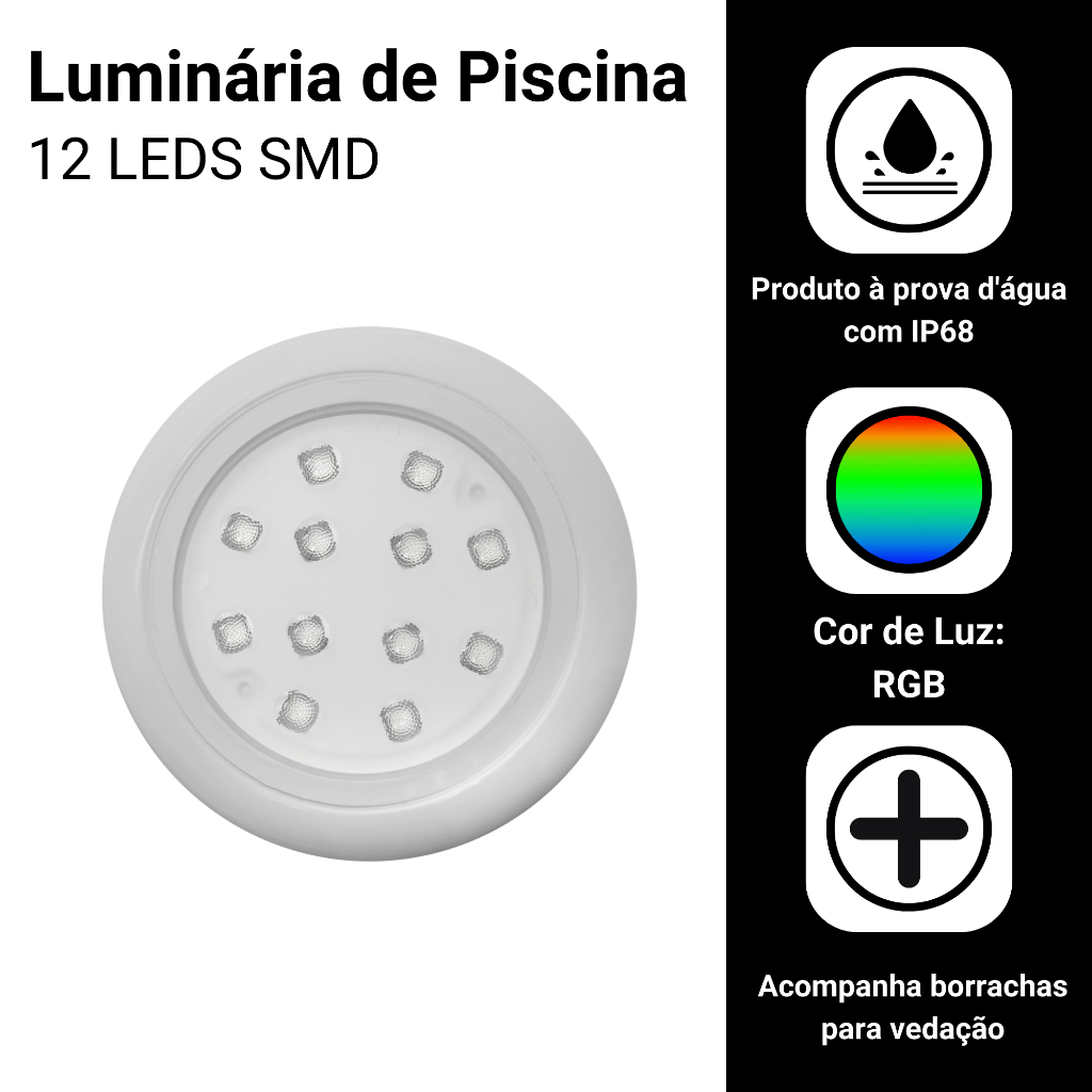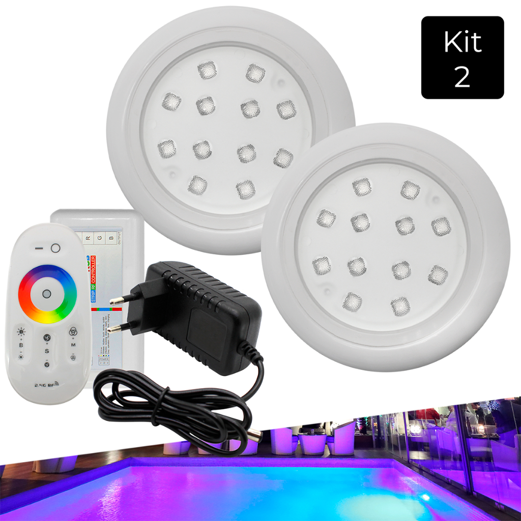 Kit 2 Kit 4 Luminária 18w ou 9w Piscina + Módulo Rgb Com Fonte 12leds ou 6leds
