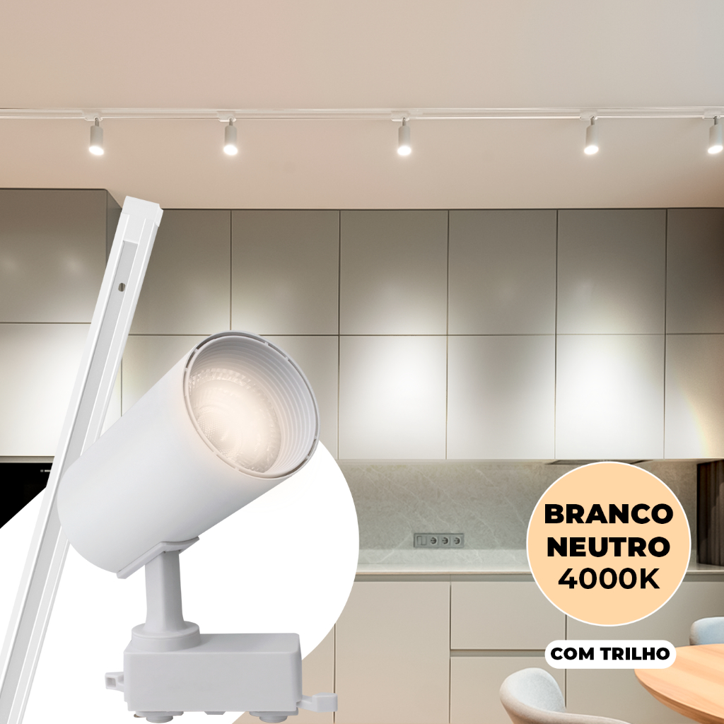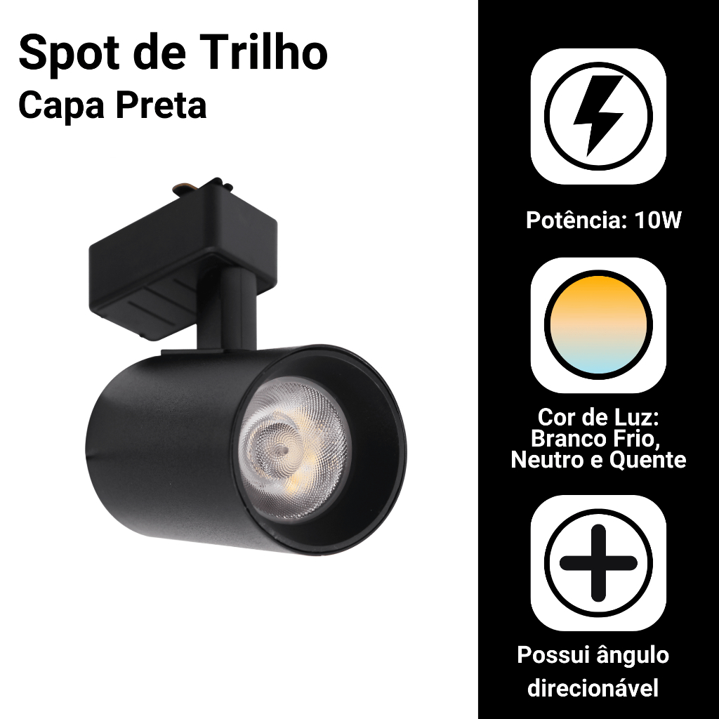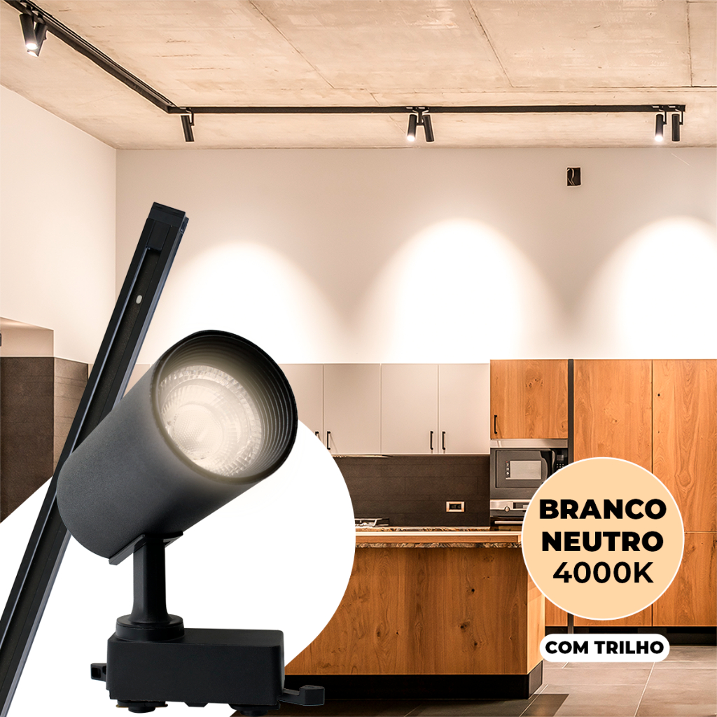 Kit Trilho Spot Eletrificado Bivolt Preta Branca LED 10w Interno Luz Frio Neutro Quente Econômico