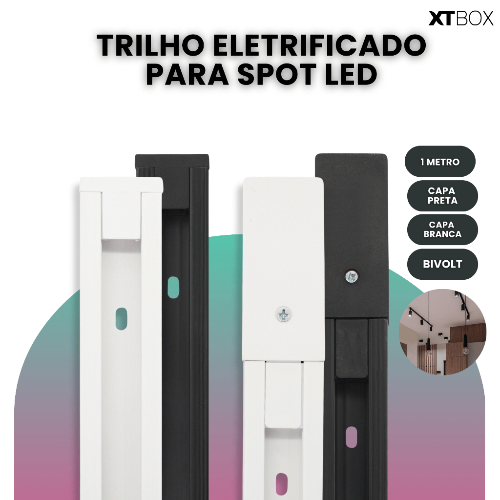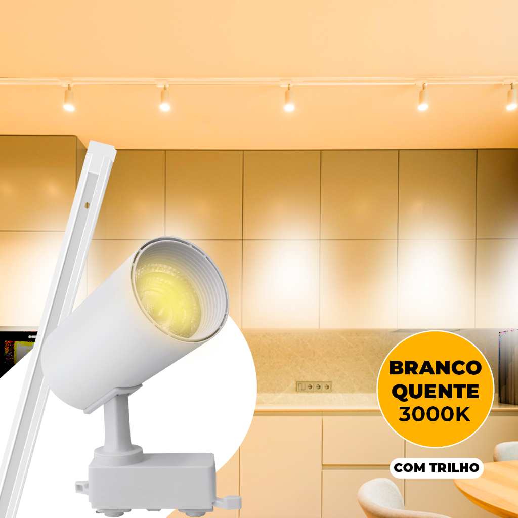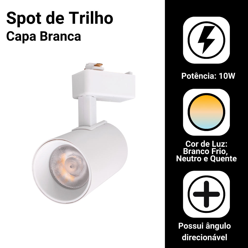 Kit Trilho Spot Eletrificado Bivolt Preta Branca LED 10w Interno Luz Frio Neutro Quente Econômico