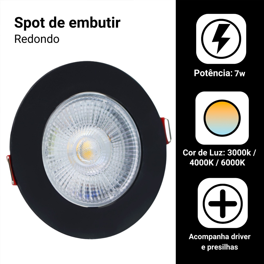 Kit 20 Spot Capa Preto Led 7w Direcionável Redondo Luz Forte