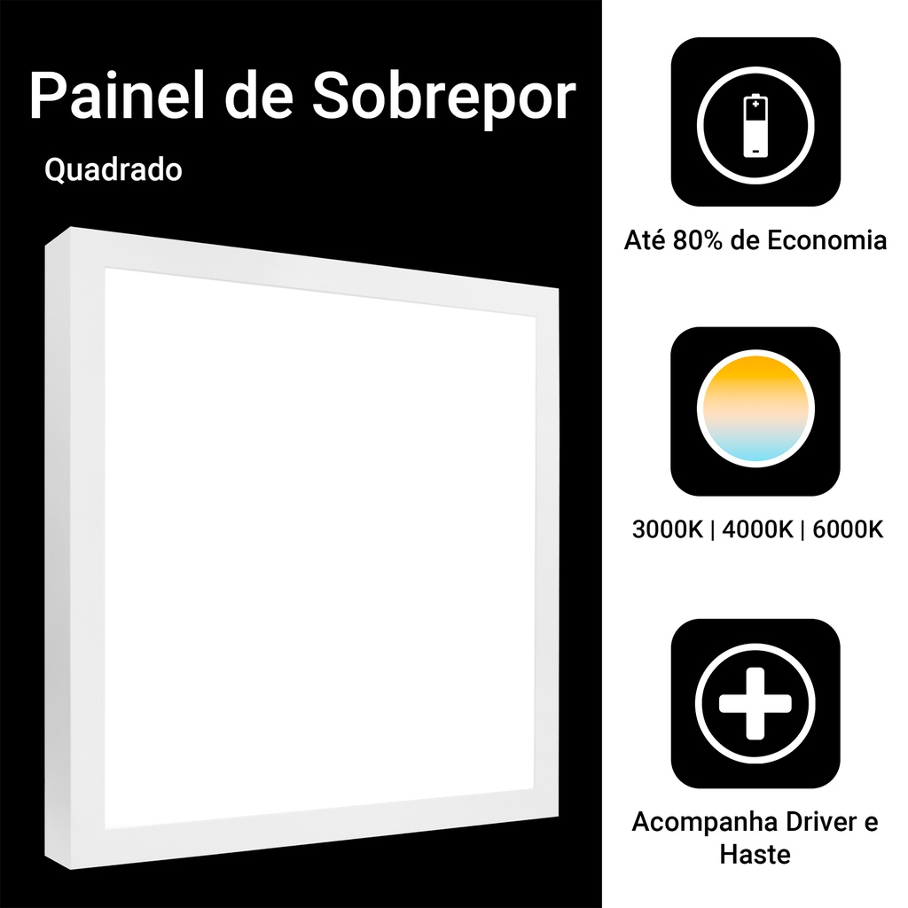 Luminária Plafon Led 48w 60x60 Sobrepor Quadrado Luz Branco Neutro