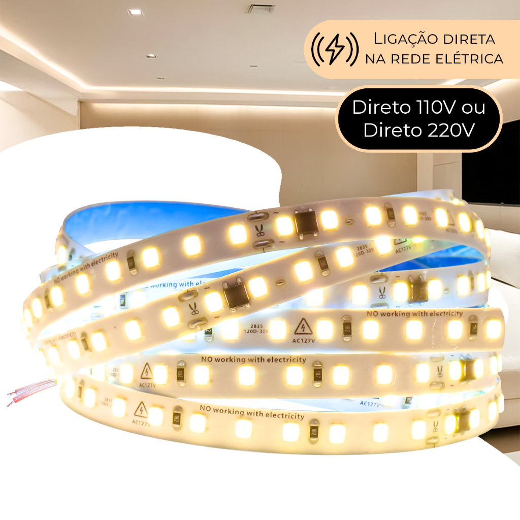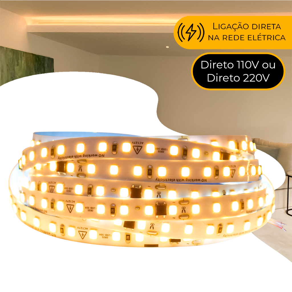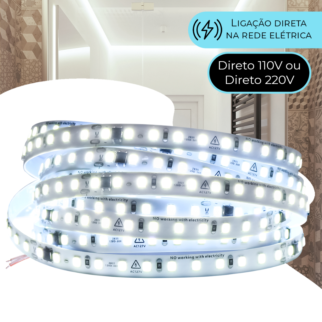 Fita Led Direta 120leds/m Rolo 10m Não Usa Fonte Luz 110v/220v Para Perfil de Led