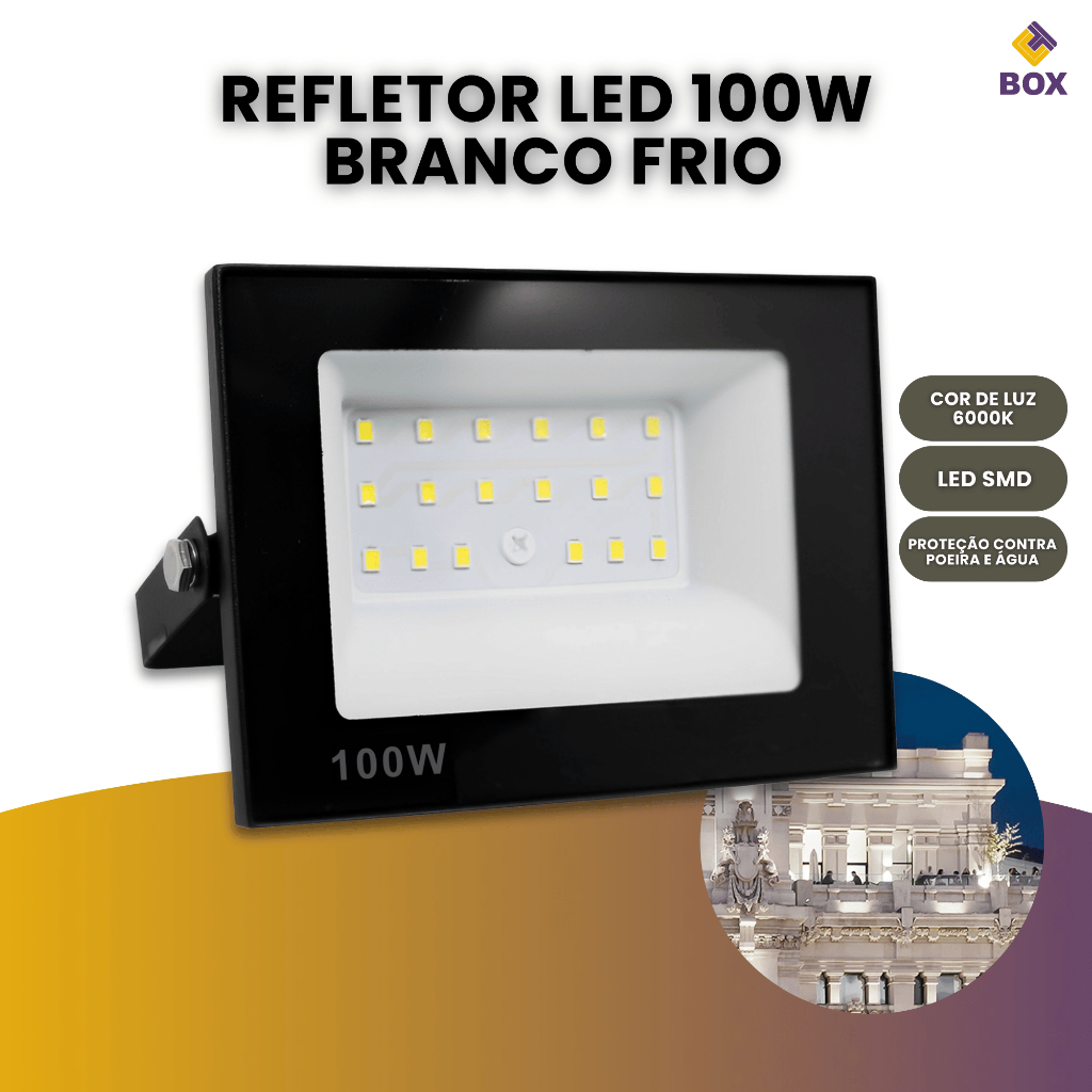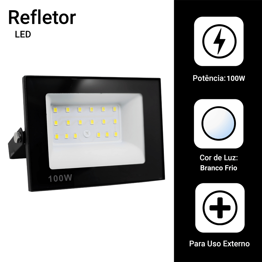 Refletor Led 100w Holofote Bivolt Prova D'água Luz Branco Frio