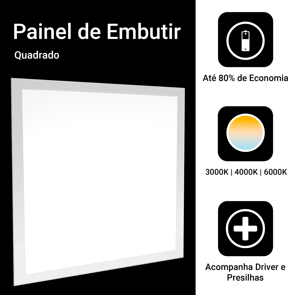 Kit 2 Luminária Painel 40w Embutir 40x40 Plafon Led 3 Cores Luz Led