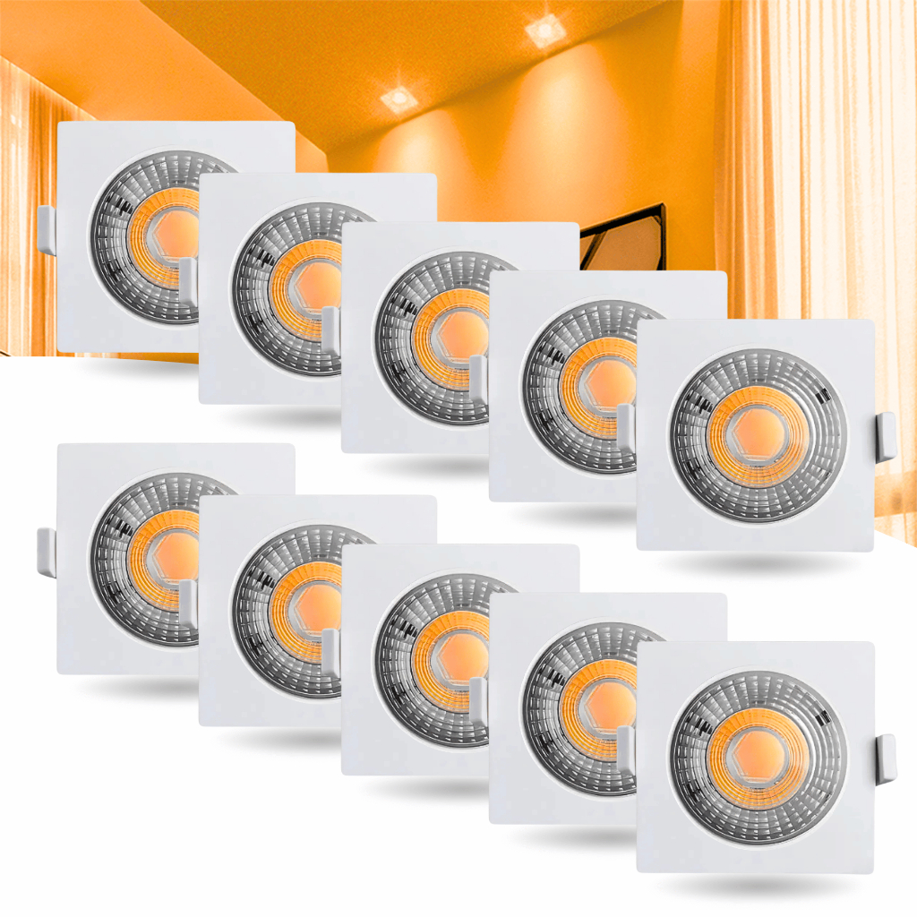 Kit 10 Spot Led Smd 7w Dicróica Direcionável Quadrado
