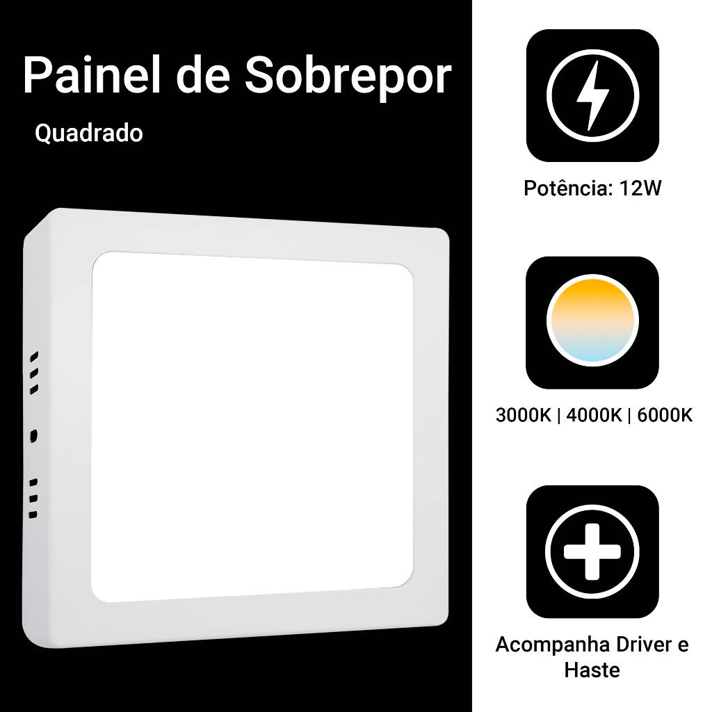 Painel Plafon De Teto Sobrepor Quadrado e Redondo Led 12W