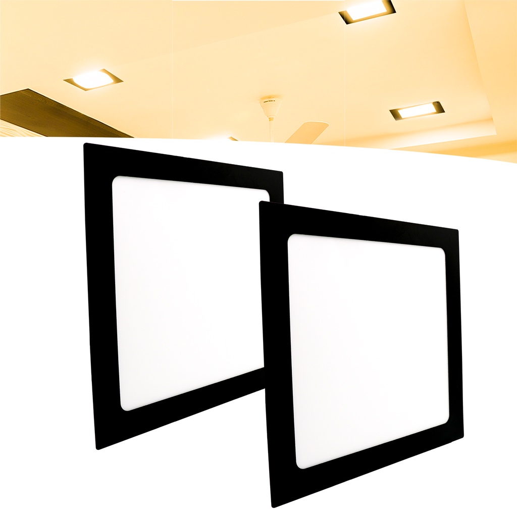 Kit 2 Painel Plafon Led Embutir 18w Bivolt Quadrado Preto