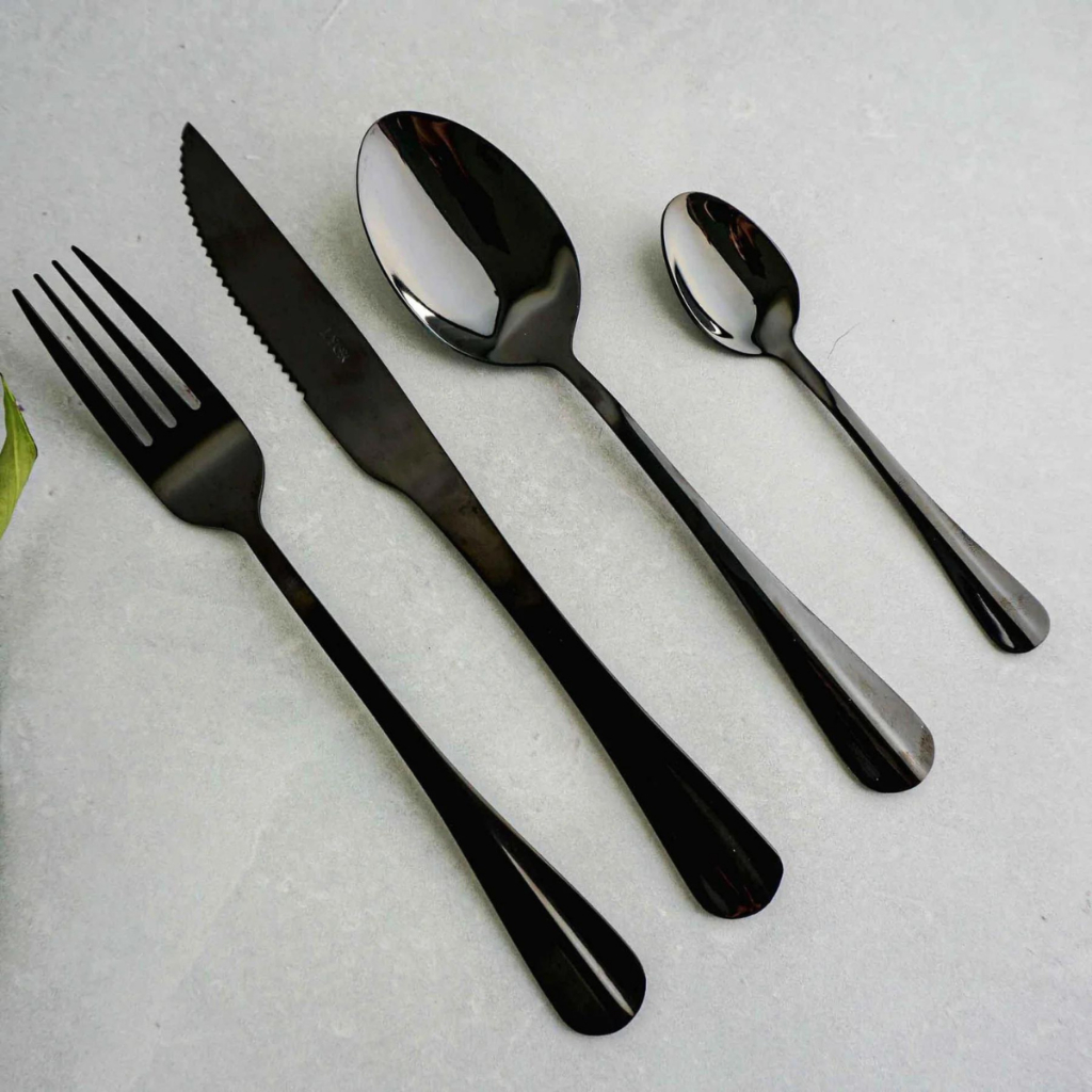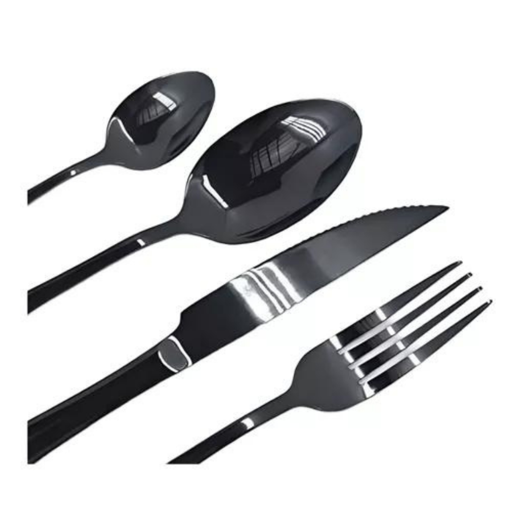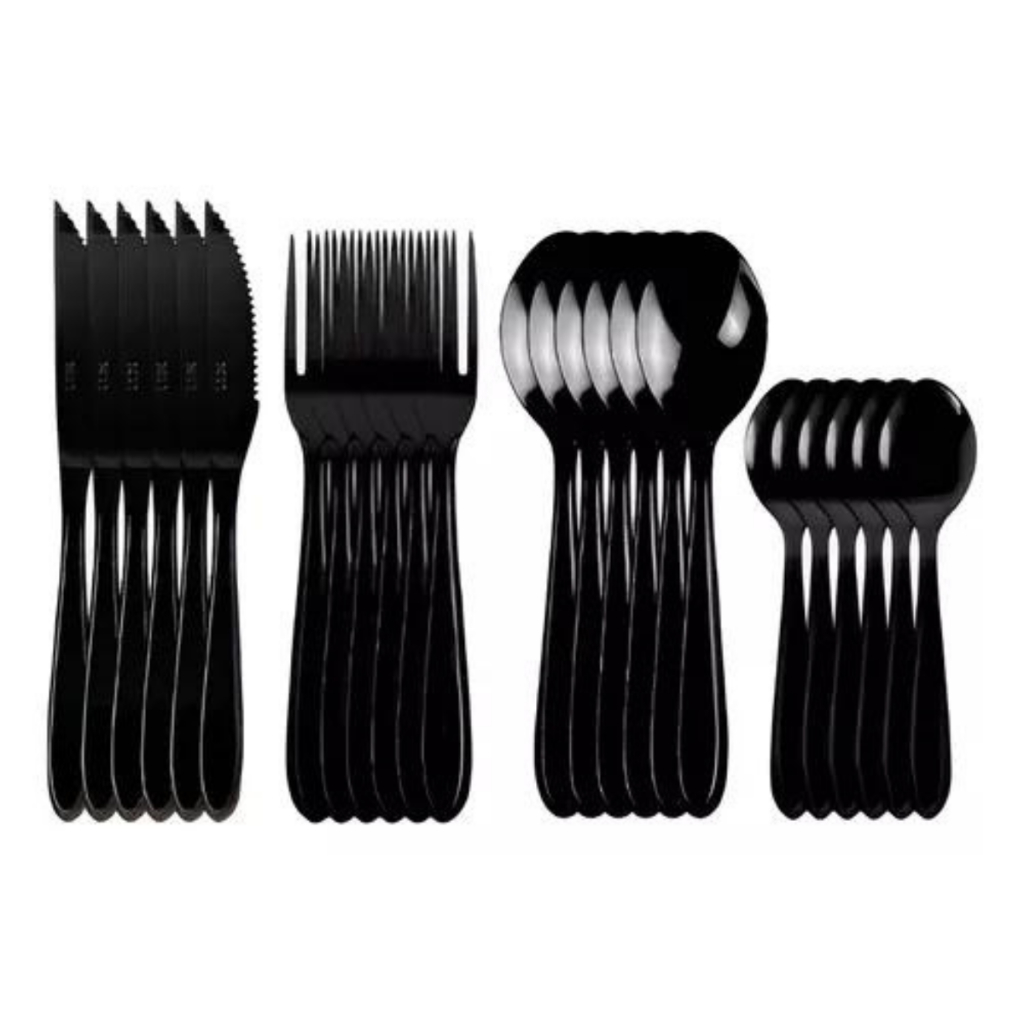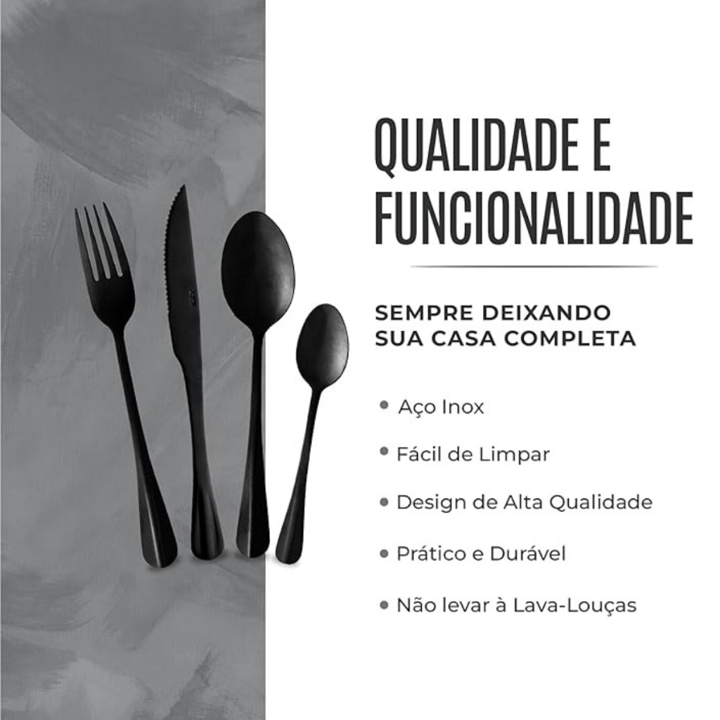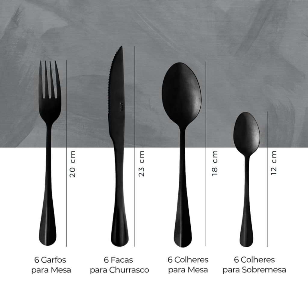 Jogo Faqueiro Aço Inox Lyor Preto 24 Peças Luxo Jantar Mesa Serve 6 Pessoas