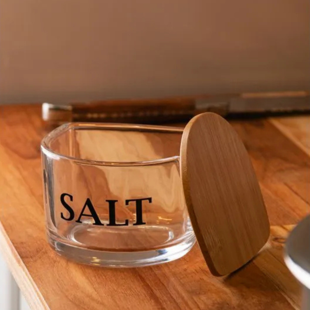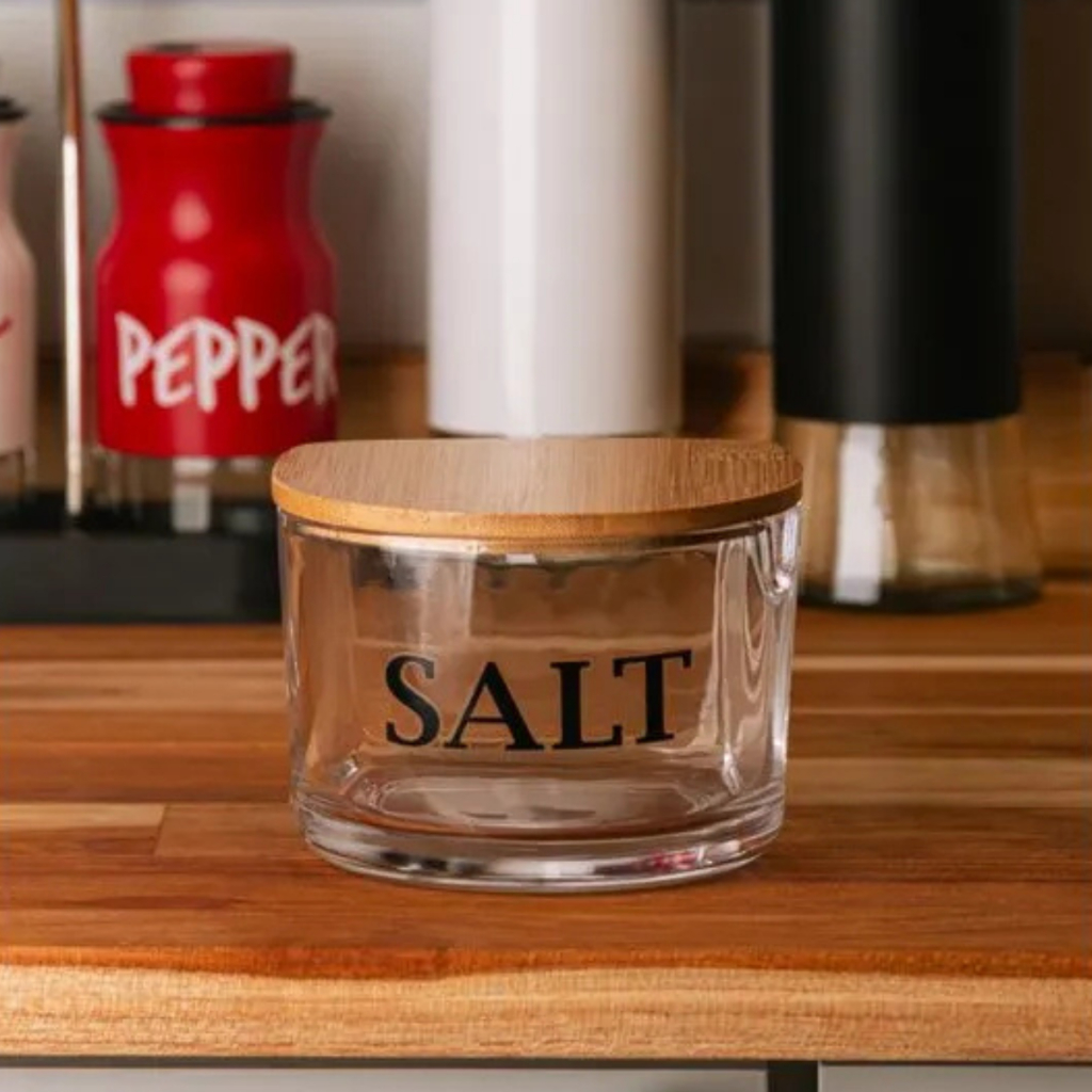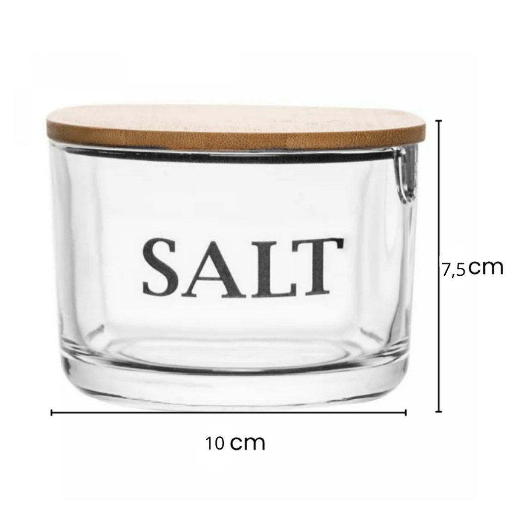 Saleiro De Vidro Com Tampa De Bambu Basic Wolff Luxo Elegante