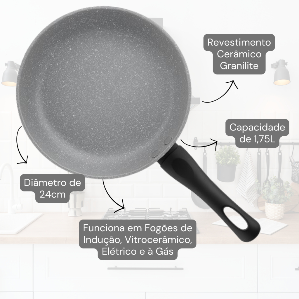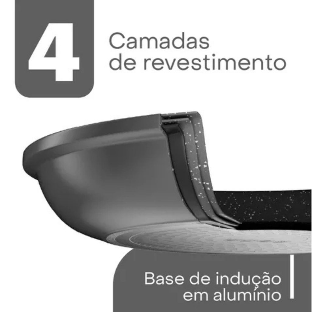 Frigideira Antiaderente Indução 24cm Granilite Cinza com Tampa Para Todos os Fogões