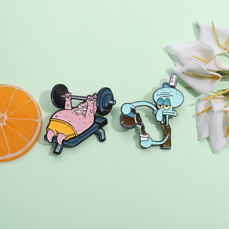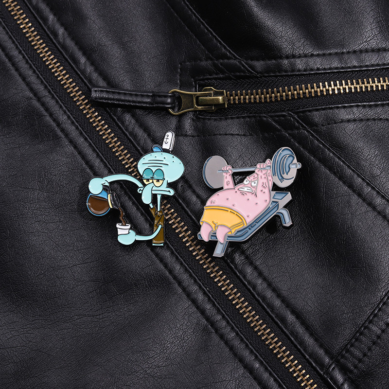 " Pat Star and Squidward Spongebob Series " Broche De Esmalte Da Série " Acessórios De Moda Saco Escolar Crachá Presente Para Amigos