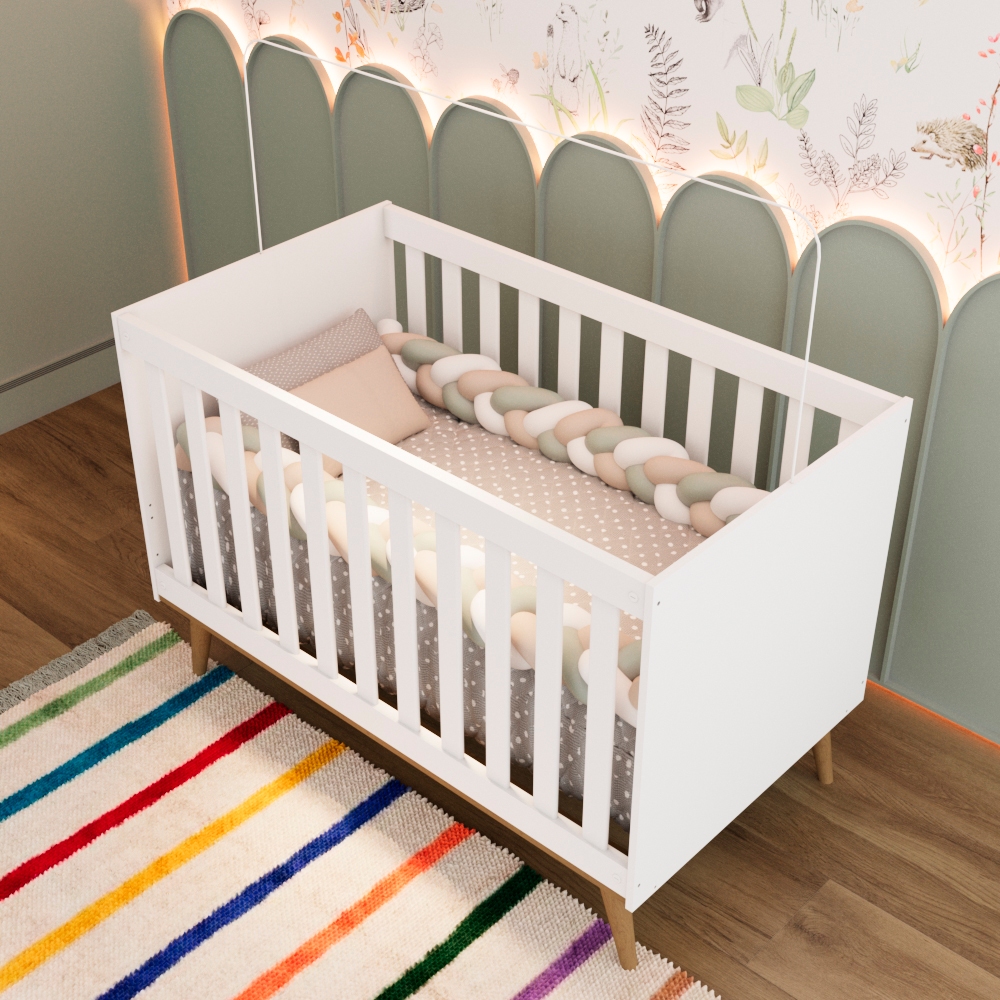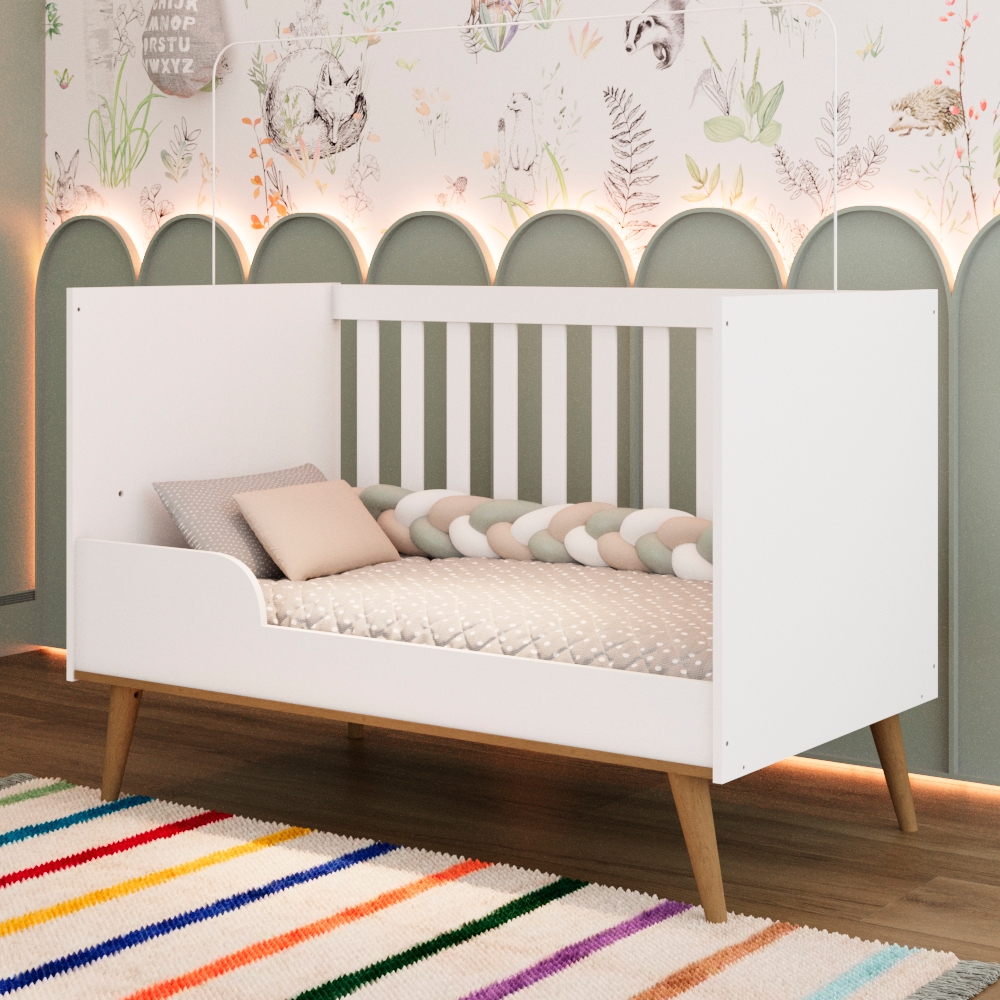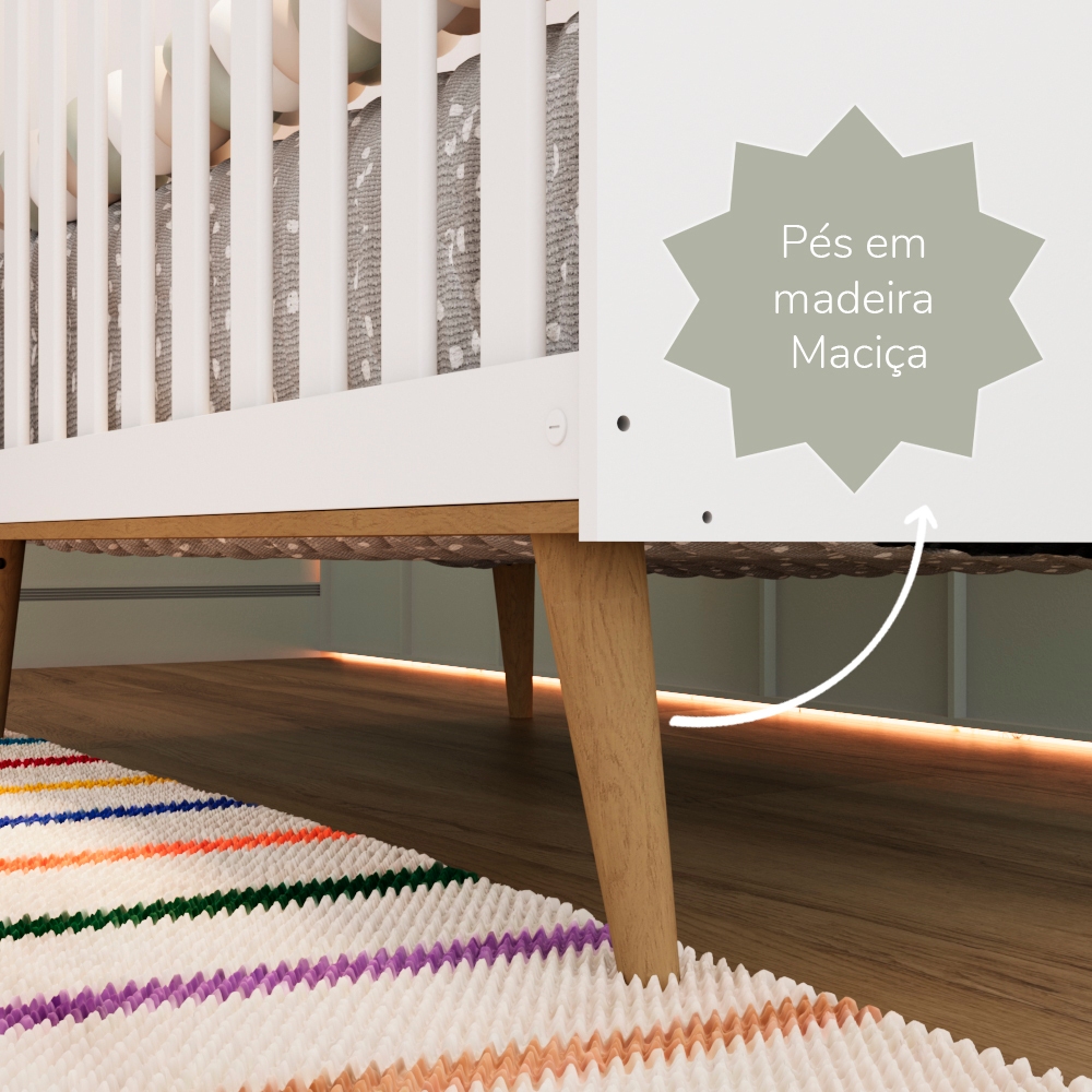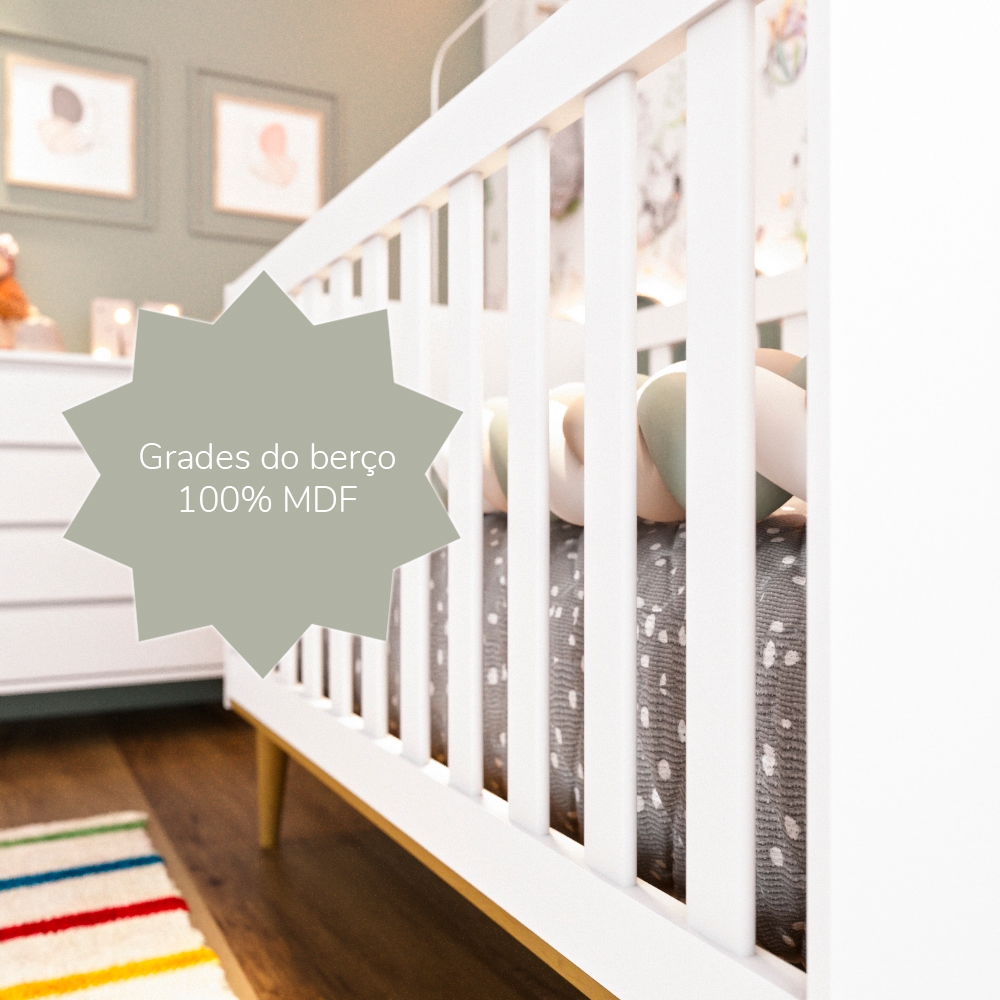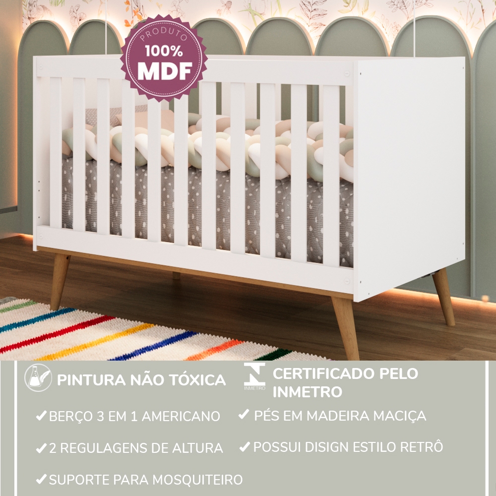 Berço Americano 3 em 1 Retrô Pé Palito Mini Cama Mini Sofá Ludmila MDF Branco