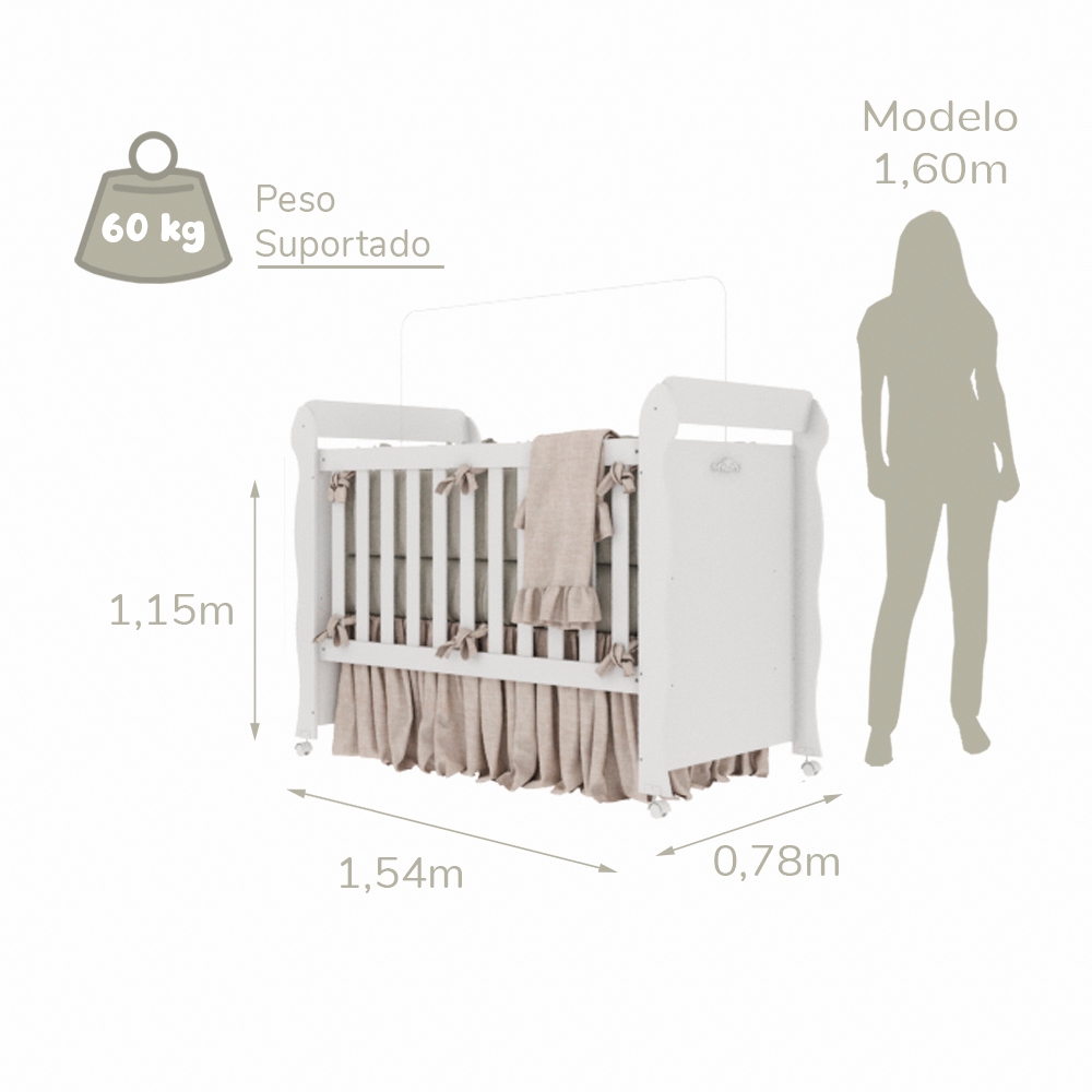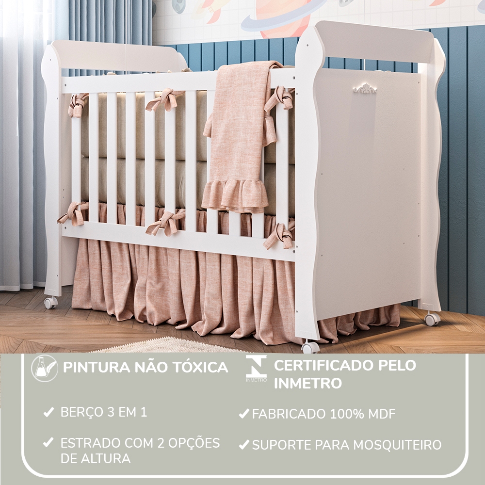Berço Americano Marquesa Mini Cama Provençal Lisa 100% MDF Branco